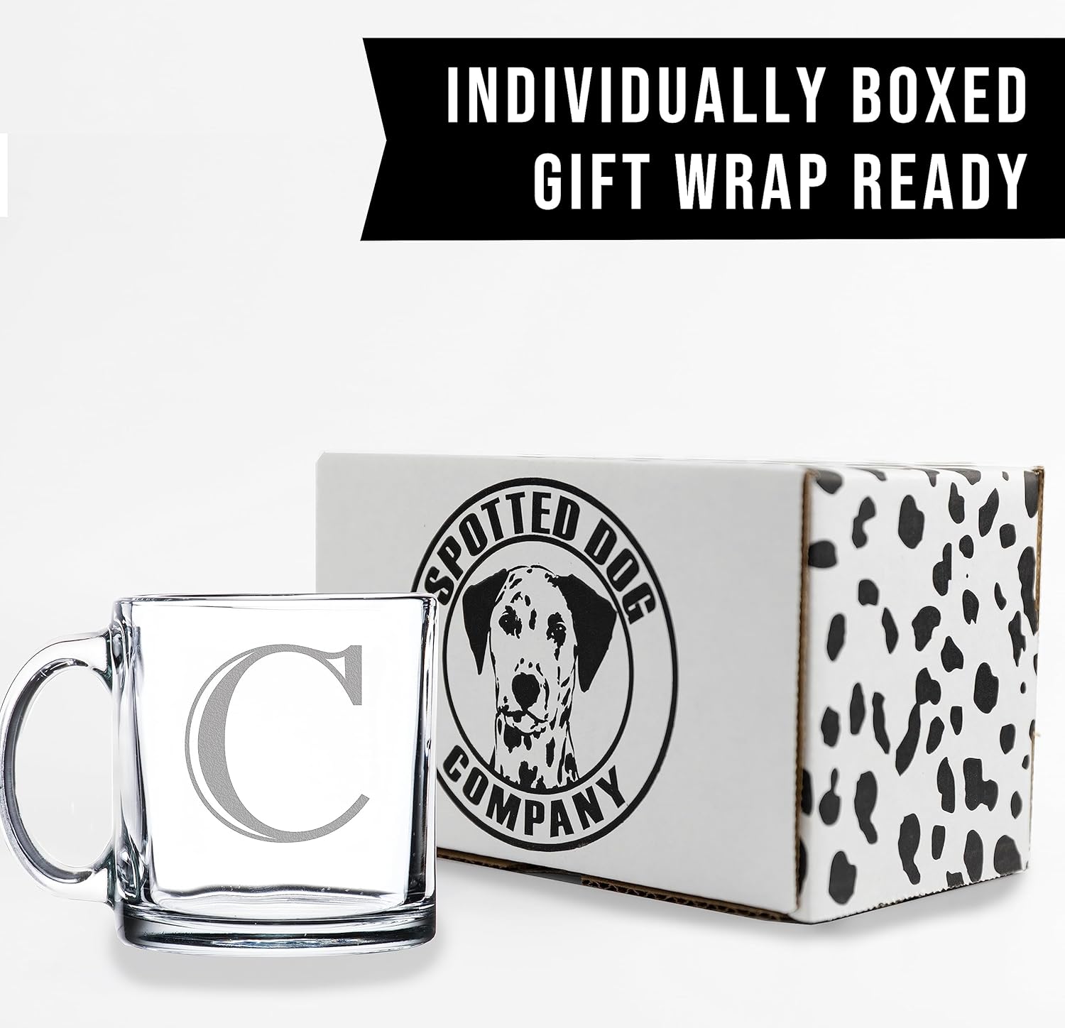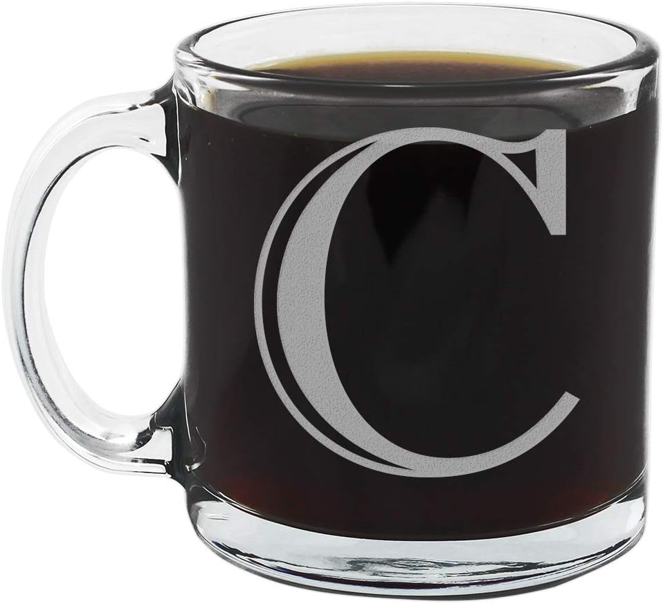 Spotted Dog Company Etched Monogram 12oz Clear Glass Coffee Mug (Letter C), A-Z Customized Coffee Gifts for Coffee Lovers, Custom Engraved Gifts for Women Her, Personalized Gift for Men, Initial