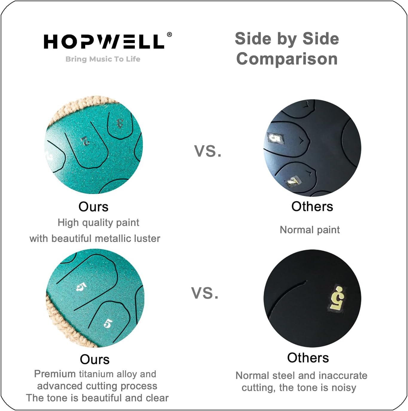 HIGH QUALITY: Hopwell steel tongue drums are hand crafted by our master artisans, the surfaces are painted with paint which is pollution-free and does not fade
