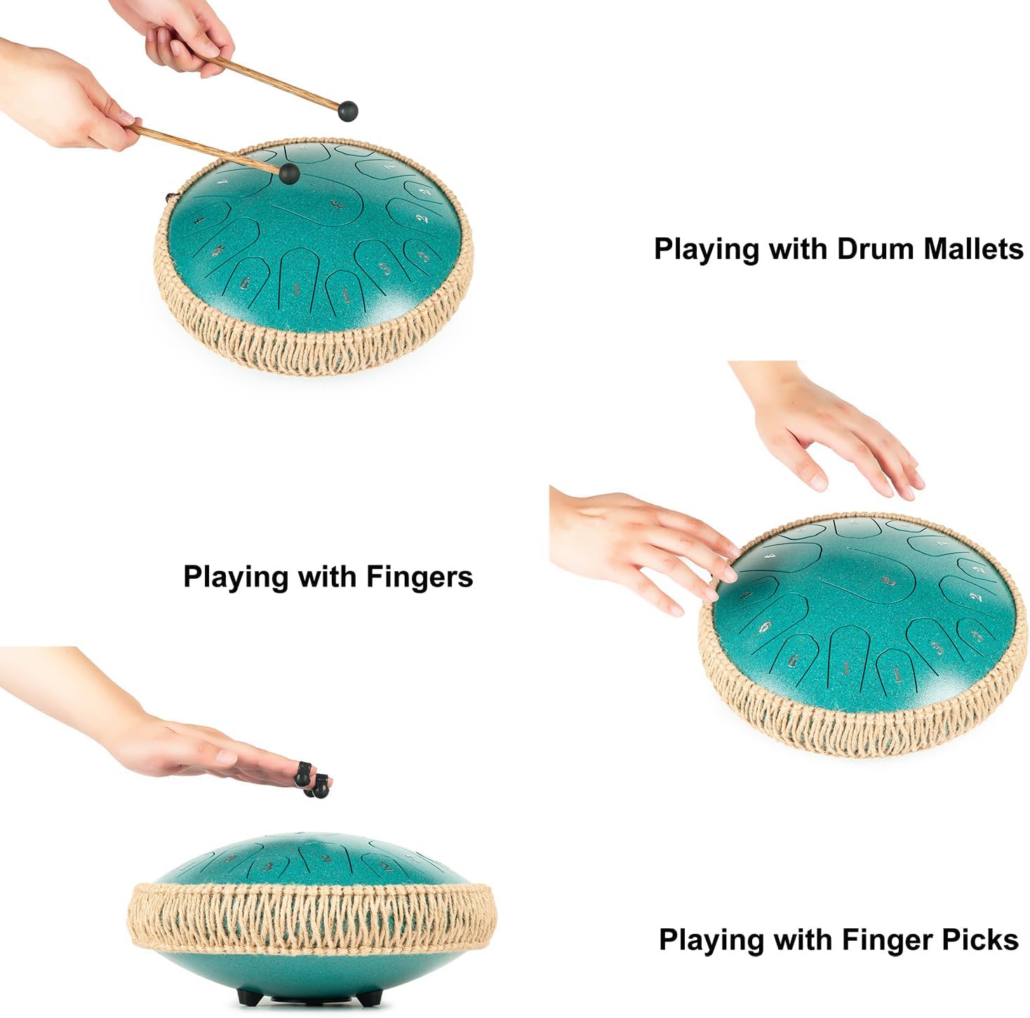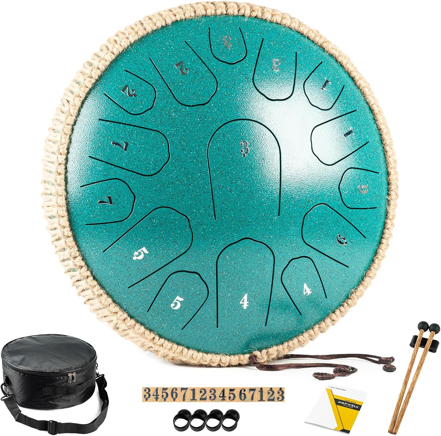 Charming SoundsHigh QualityEasy to LearnExcellent Gift Package Included: 1 x HOPWELL Steel Tongue Drum 2 x Wooden Drum sticks 4 x Finger Picks 1 x Travel Bag 1 x Music Book