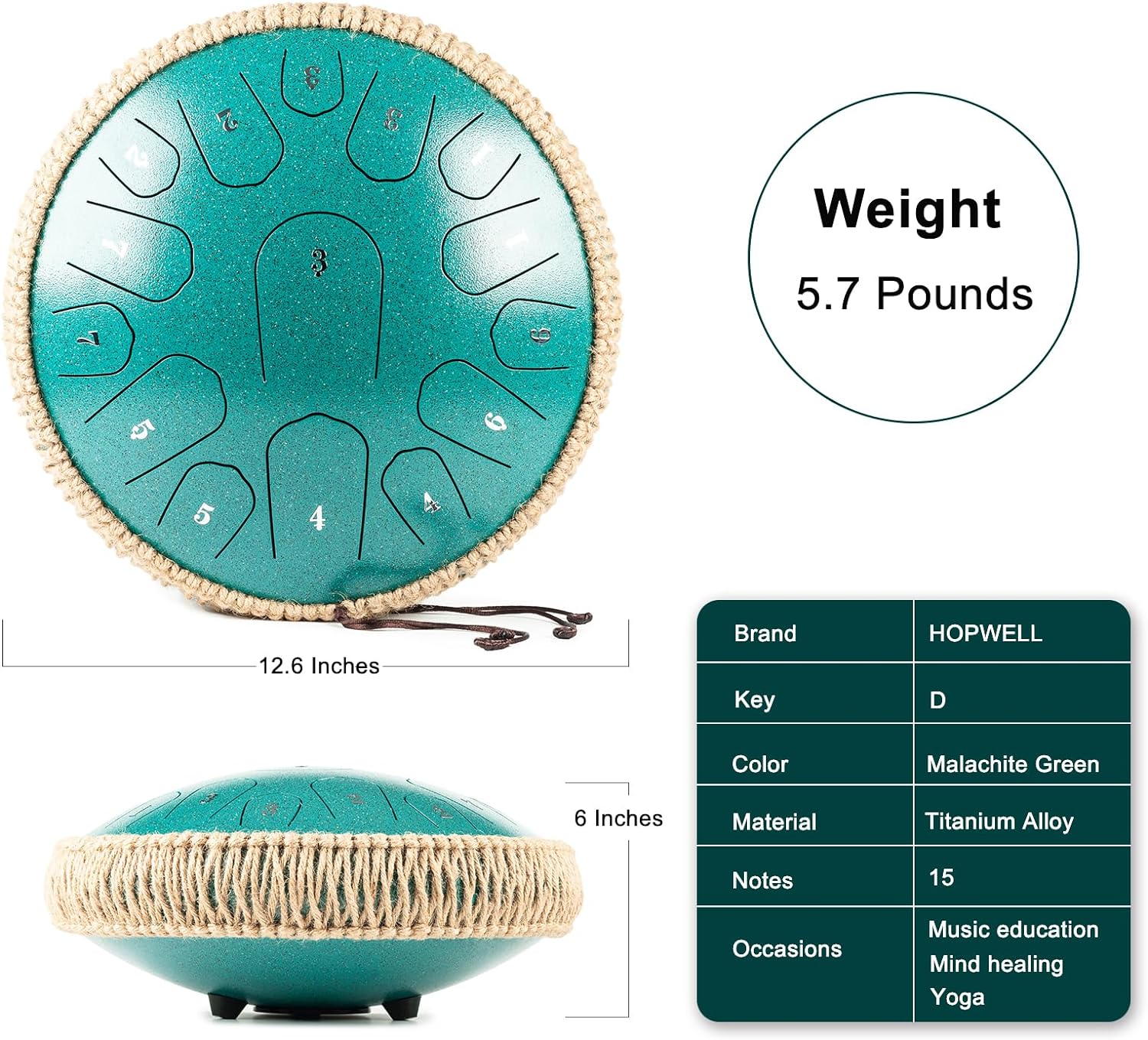 Material: Premium Titanium Alloy Color: Malachite Green Diameter: 13 Inches Height: 6 Inches Net weight: 5.7 Pounds