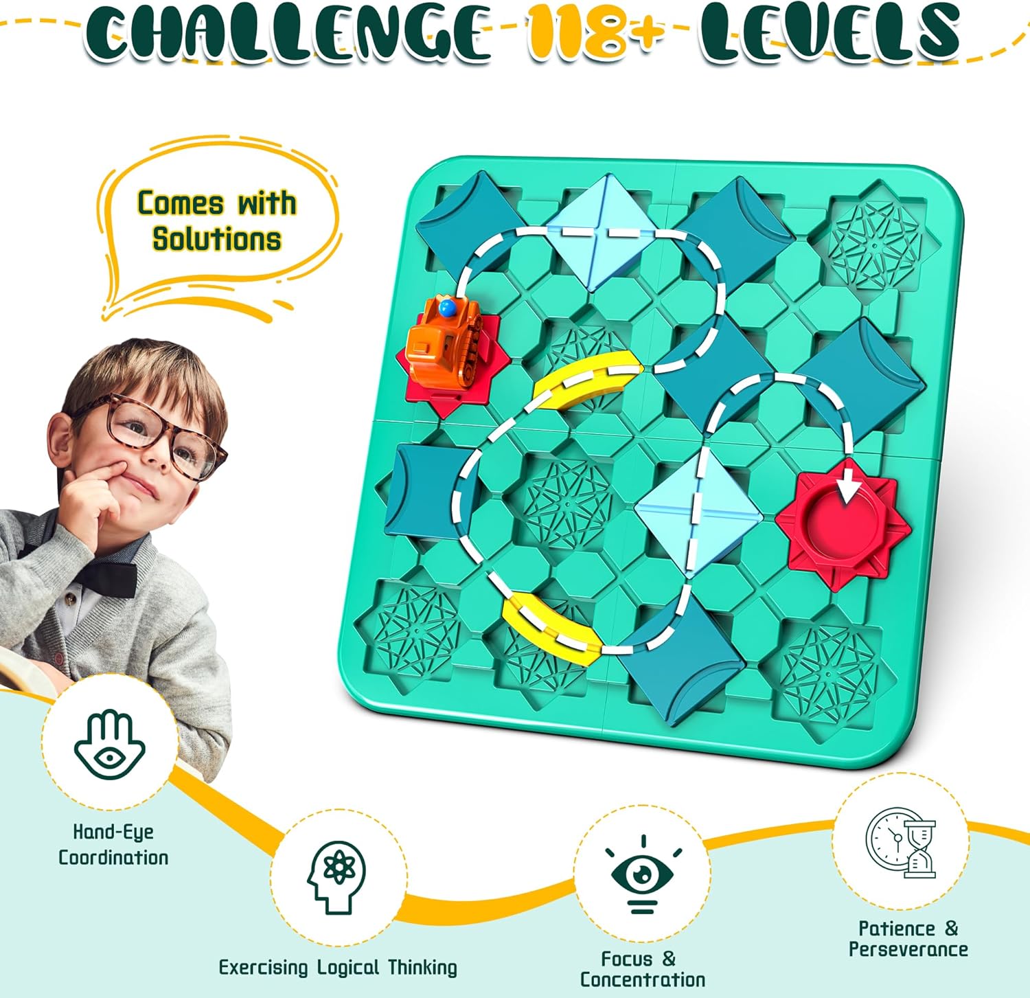 【Increasing Difficulty Levels】This puzzle STEM board game offers over 118 challenges with gradually increasing difficulty, ensuring that kids can start at a comfortable level and progressively move to more challenging tasks as their skills improve