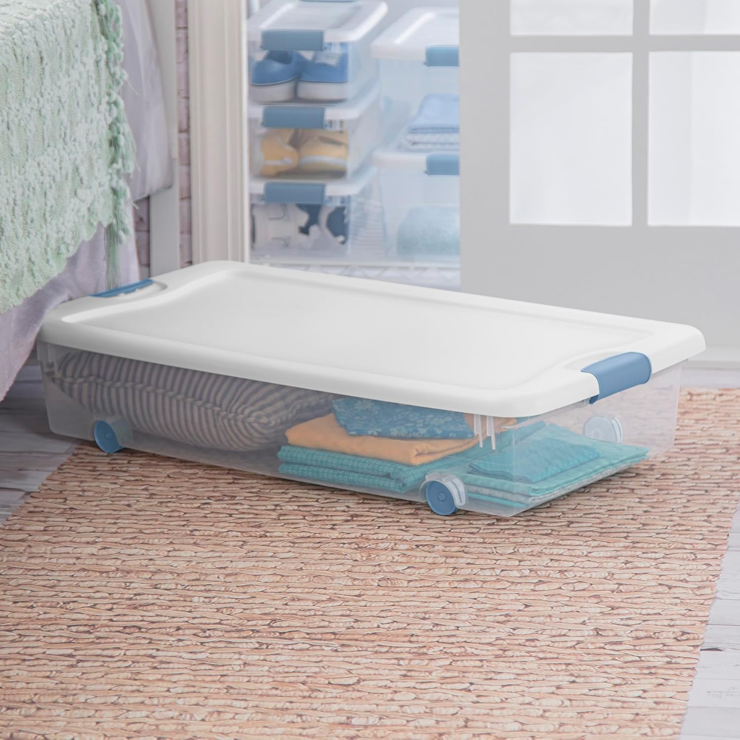 Underbed Storage: Smooth gliding wheels to slide out from under a bed, providing convenient access.