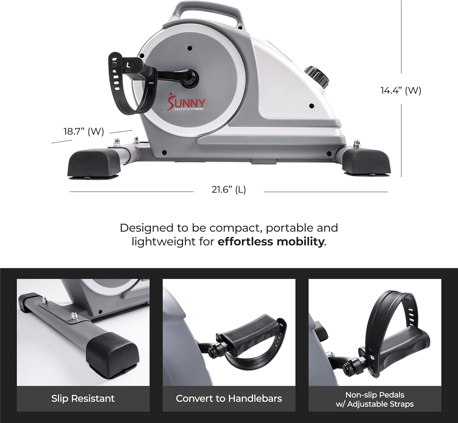 Sunny Health & Fitness Dual Function Under-Desk Bike Trainer, Mini Exercise Machine for Senior Training, Arm/Leg Cardio Cycle Workout, Optional Magnetic, Motorized & Free SunnyFit App Bluetooth Link