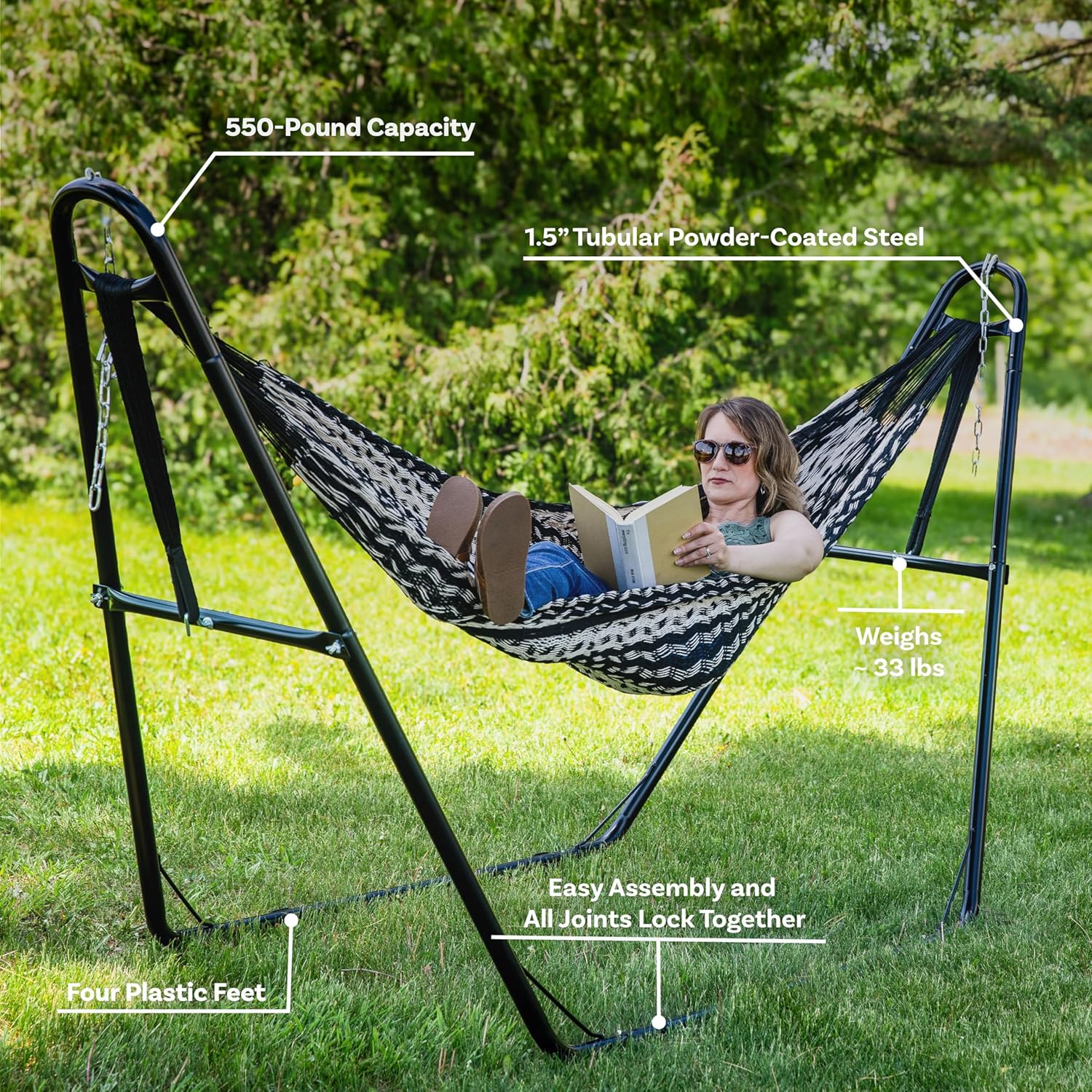 4 reviews for Sunnydaze Universal Double Hammock Stand Only – 550-Pound Capacity – Heavy-Duty Hammock Stand for Outside – Fits 9 to 14 Foot Hammocks – Black