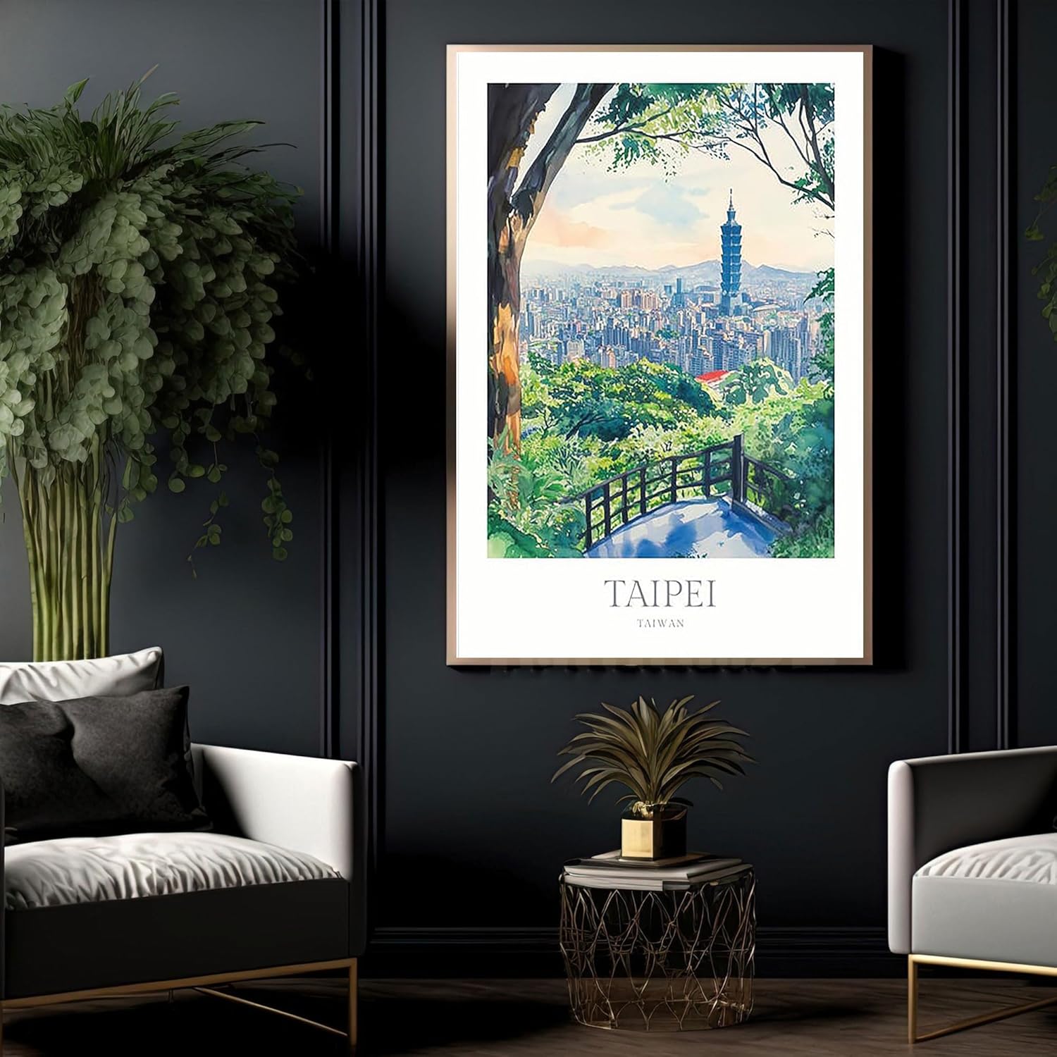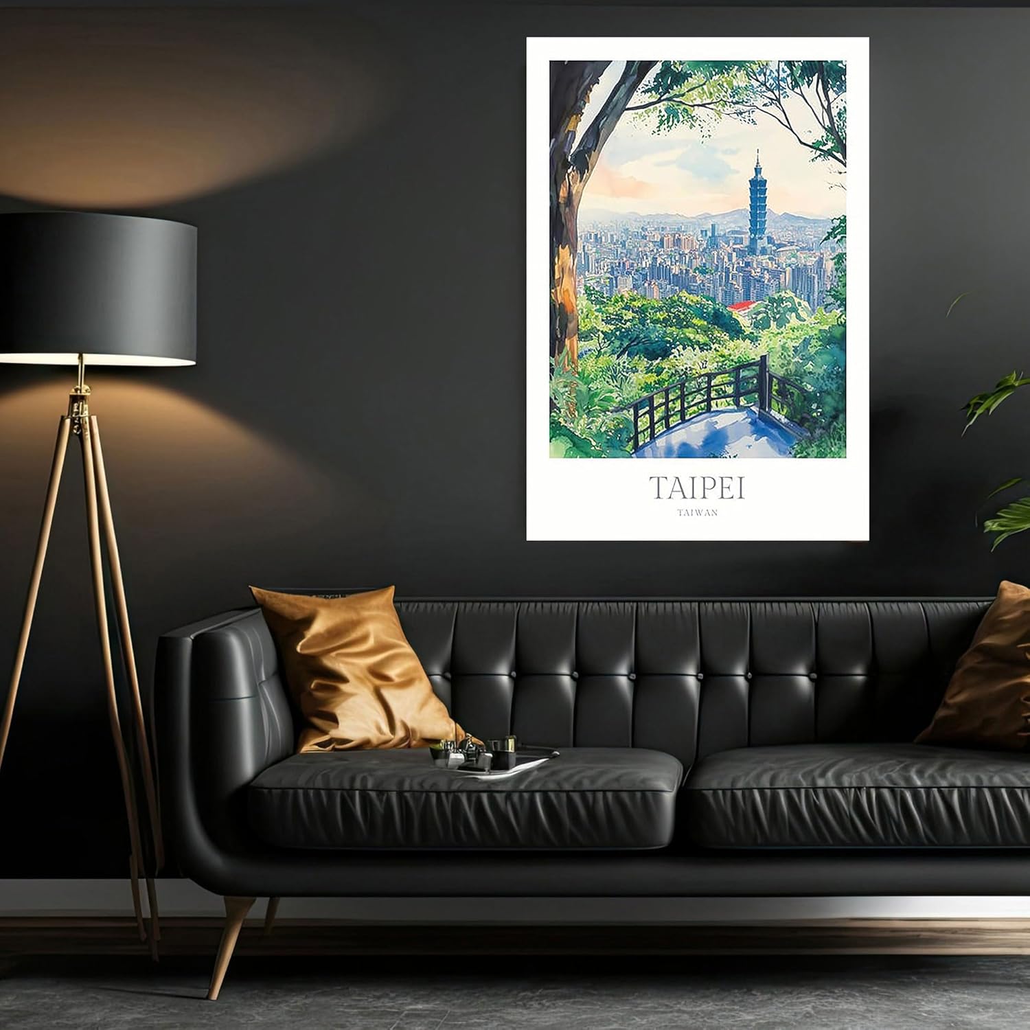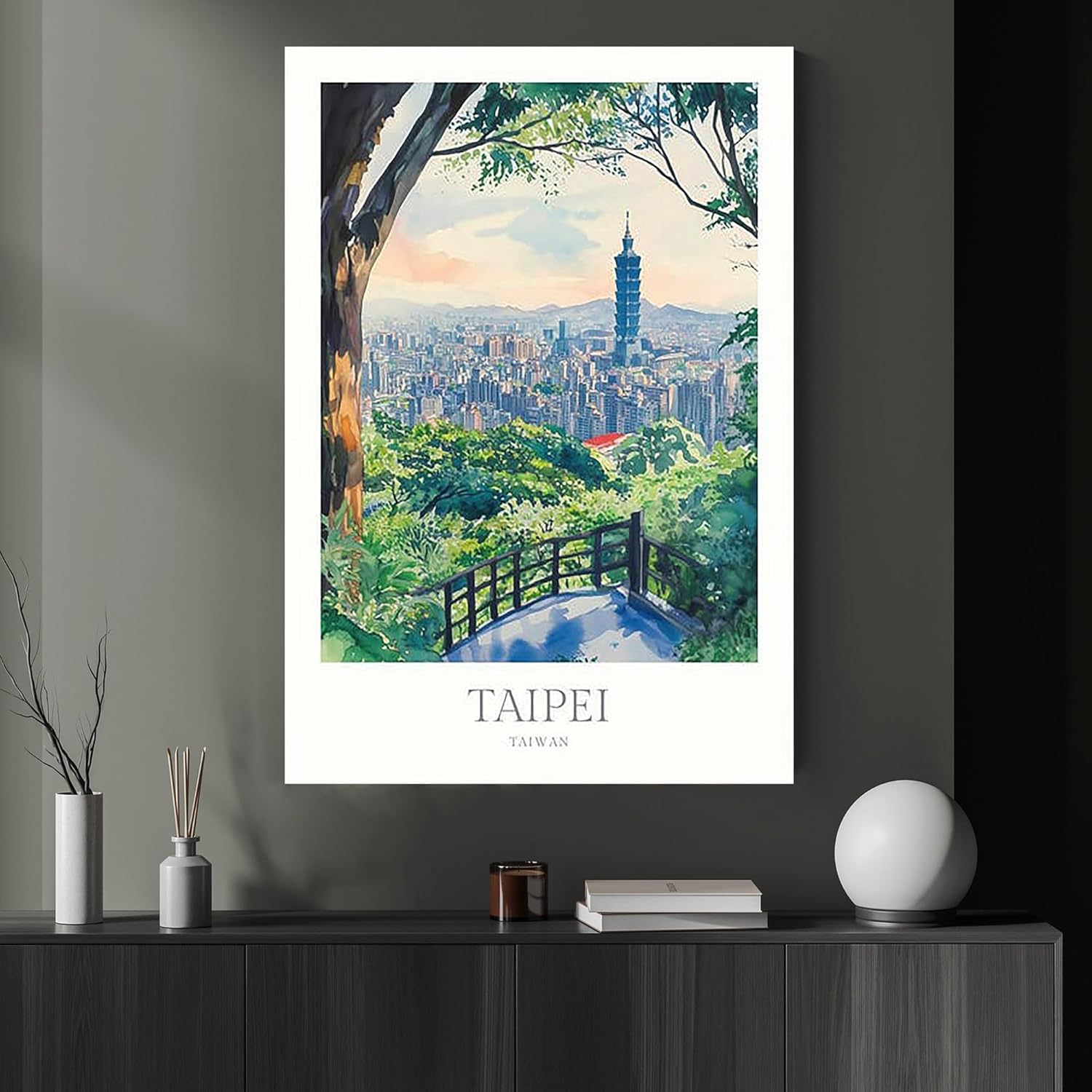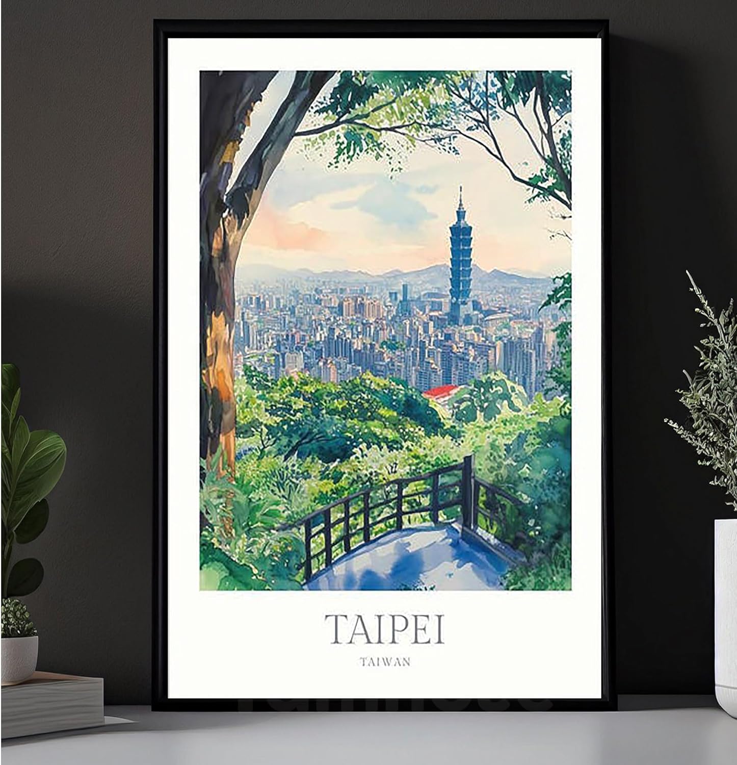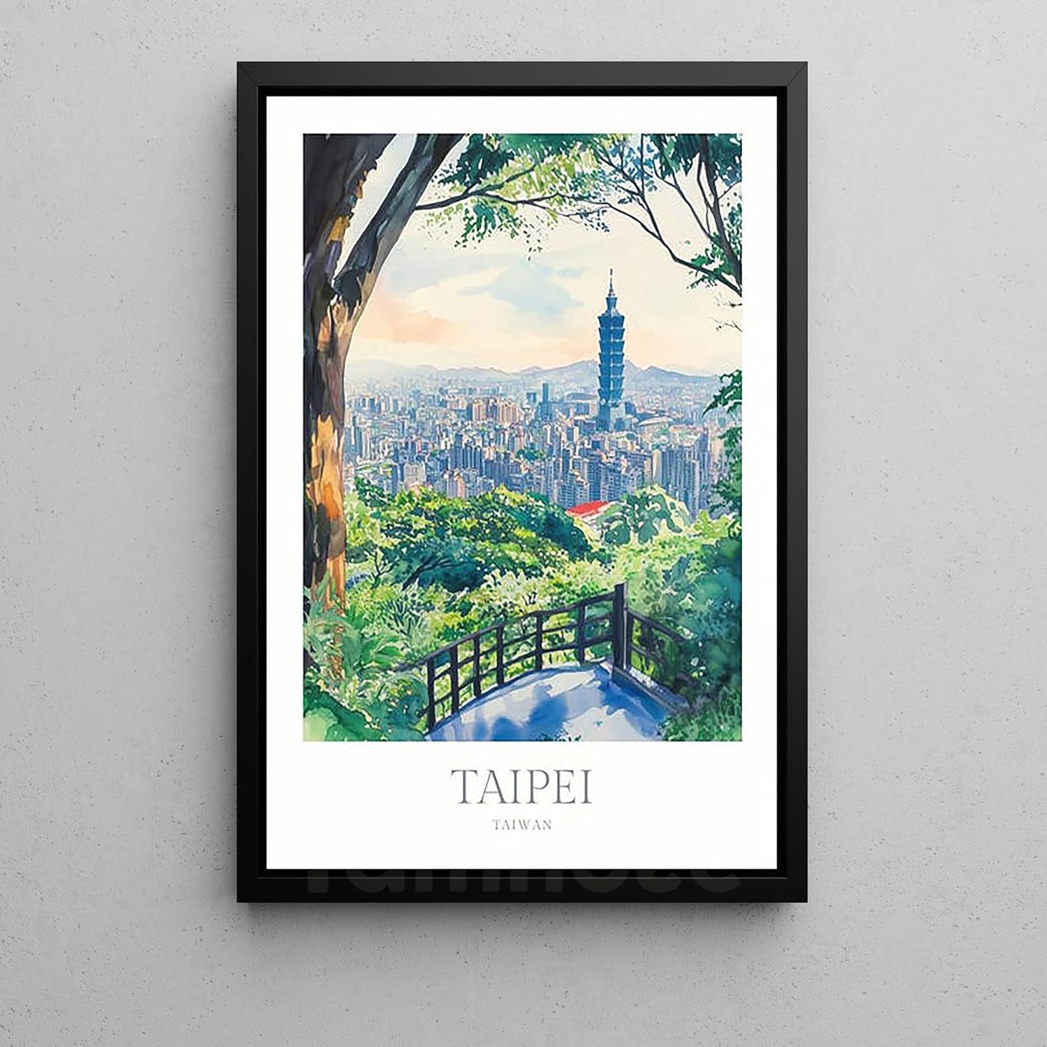 Taipei Print Watercolor Poster Taipei Wall Art Home Decor Print Taiwan Poster Print Digital Download Taiwan Travel Art Print Taipei Poster 24X36 inch (Framed)