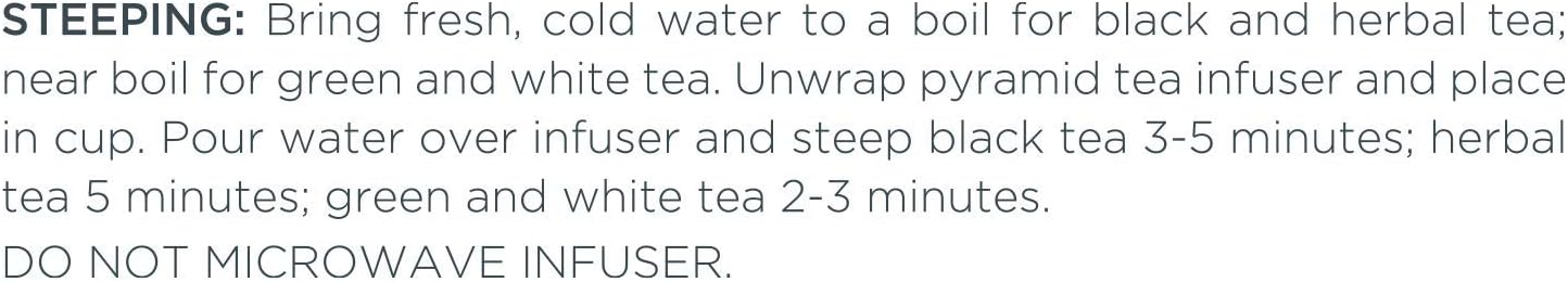 HOW TO STEEP – Unwrap the Pyramid Infuser, steep in hot water, and reveal the exquisite nature of the whole leaf teas. Allows the tea leaves to fully unfurl in the water, resulting in a most flavorful cup of tea. Do not microwave pyramid.