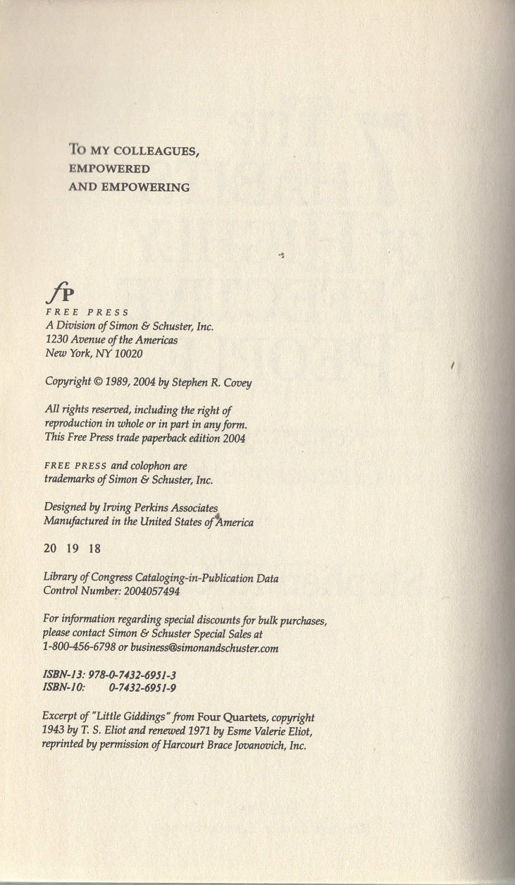 In The 7 Habits of Highly Effective People, author Stephen R. Covey presents a holistic, integrated, principle-centered approach for solving personal and professional problems. With penetrating insights and pointed anecdotes, Covey reveals a step-by-step pathway for living with fairness, integrity, service, and human dignity–principles that give us the security to adapt to change and the wisdom and power to take advantage of the opportunities that change creates.
