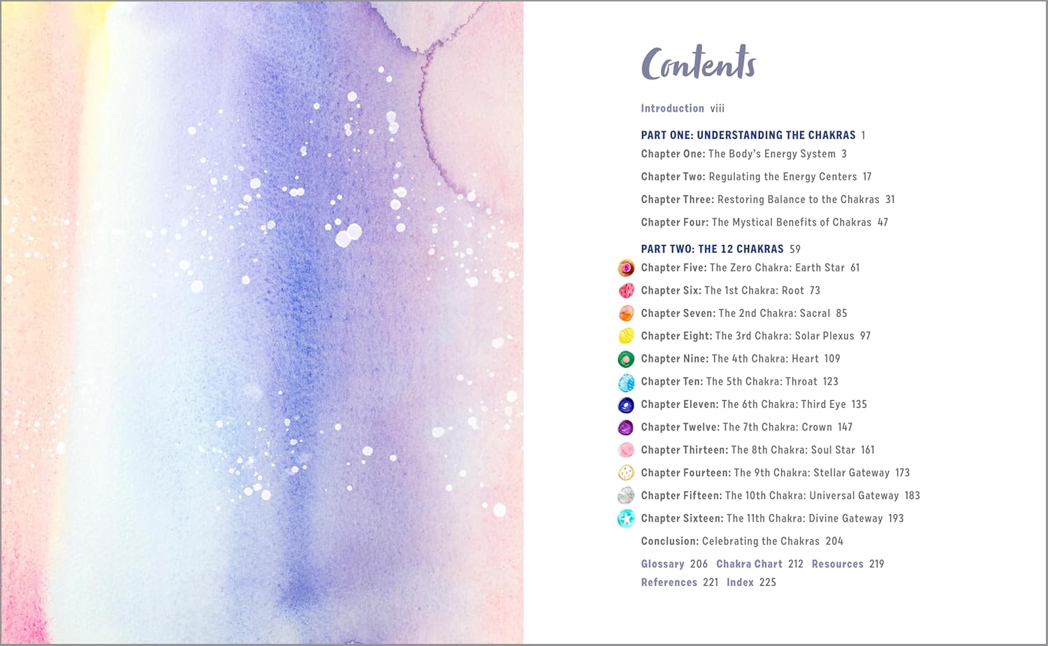 A complete reference―This book is a comprehensive but accessible introduction to what a chakra is, and how each one can regulate your body’s energy system for peace and growth.Discover the 12 chakras―Learn about the Earth Star, the Divine Gateway, and every chakra in between, along with empowering exercises for activating and aligning them for spiritual healing and a deeper connection with yourself.Beyond chakras―Find background information about the long history of the chakras, the endless ways to engage with them, and even some discussion about auras, different dimensions, and more.