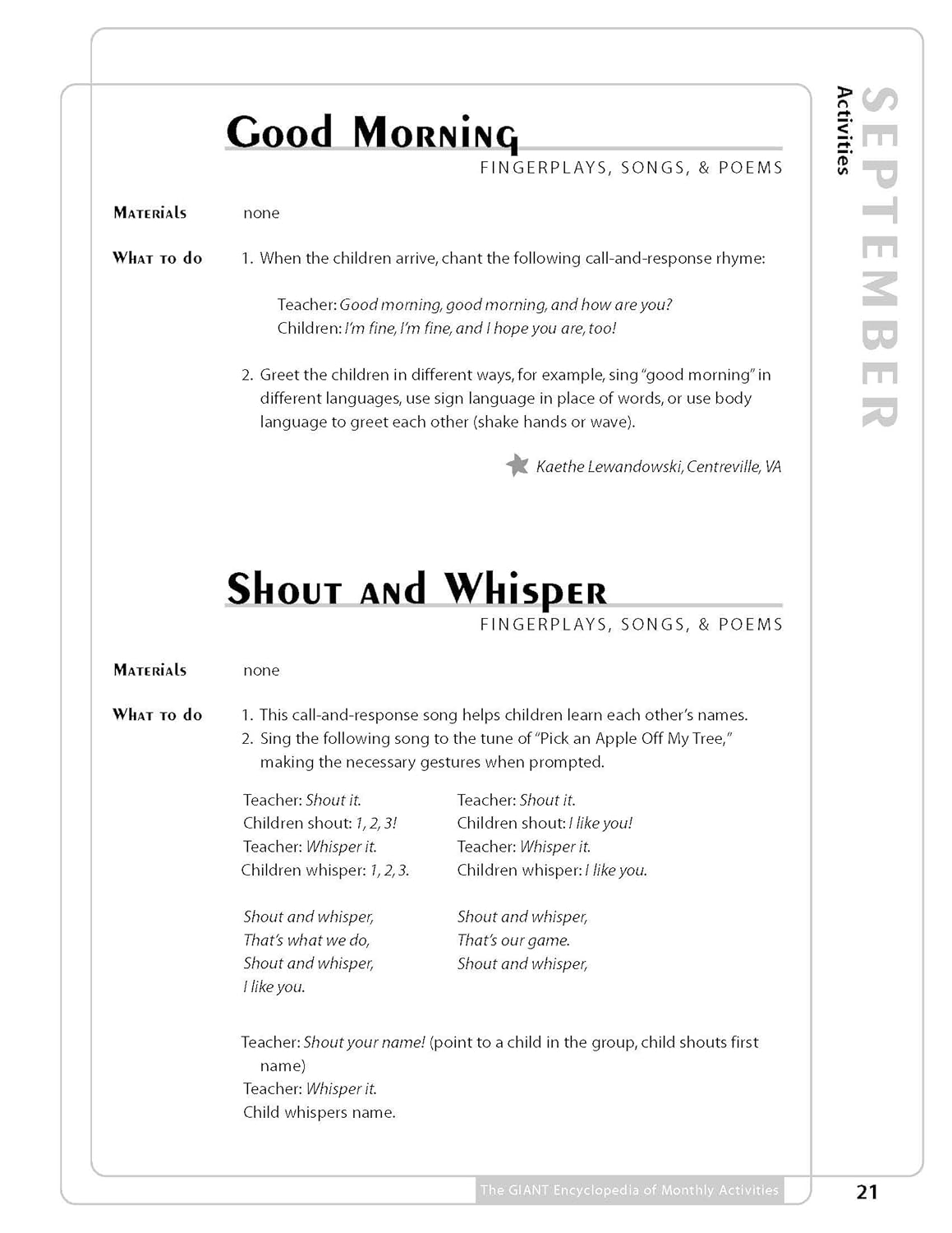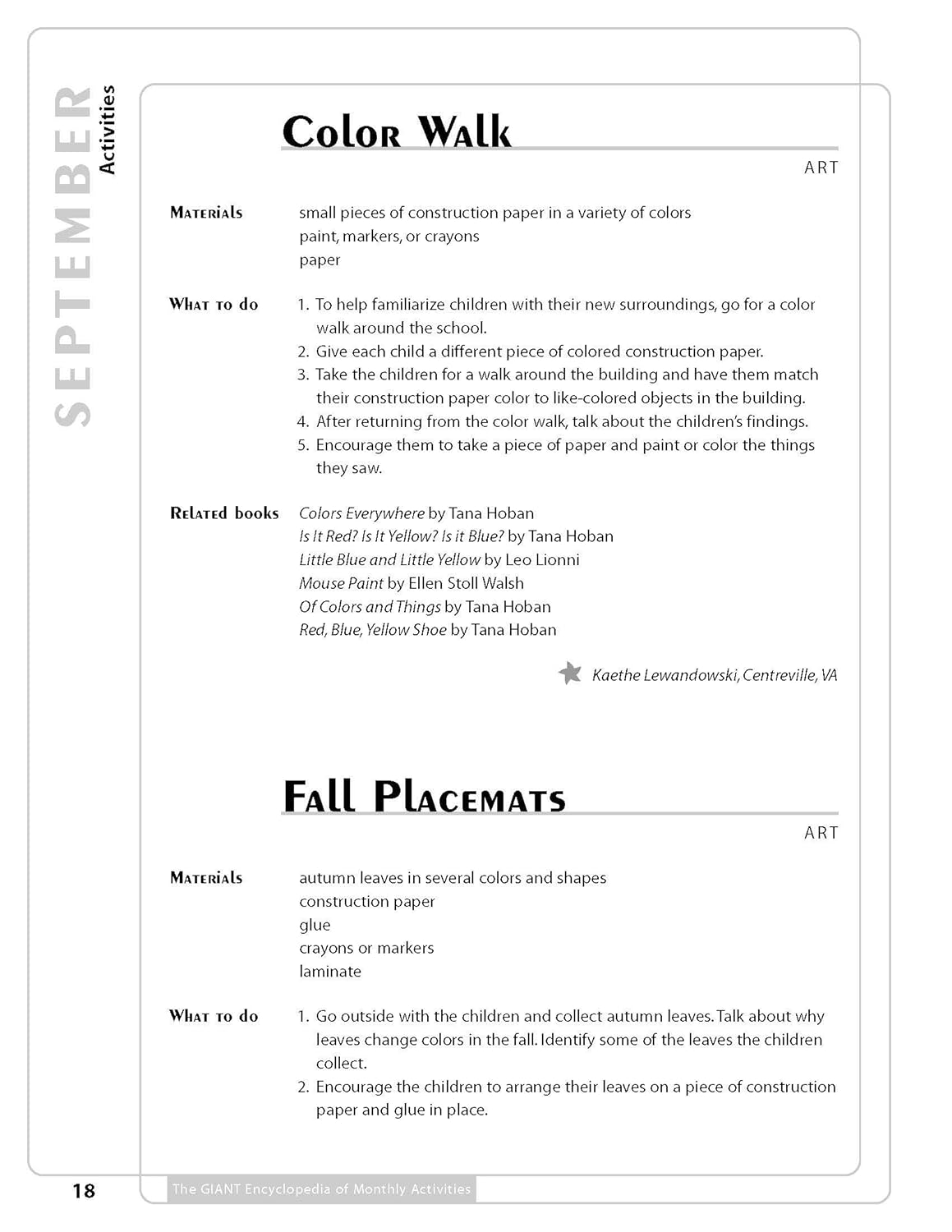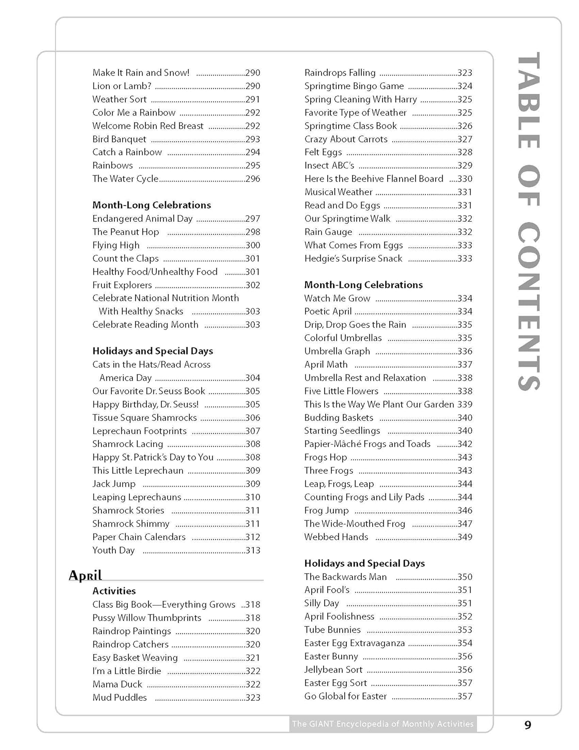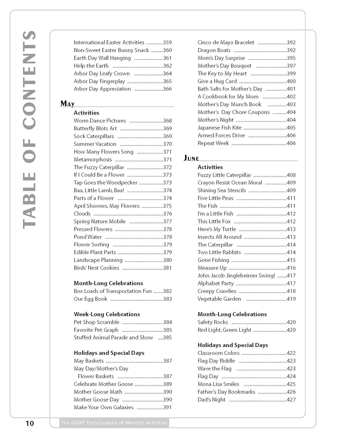With over 600 activities, The GIANT Encyclopedia of Monthly Activities is the result of a nationwide search for the most unique, fun, developmentally appropriate, and educational experiences for children. The activities included were selected as the best-of-the-best, and are organized by month for easy use by teachers. Teachers will love the creative ideas that span the traditional areas of the curriculum such as science, math, art, and music and movement, as well as the additional experiences including field trips, cooking, and holidays. Each activity includes instructions and a list of materials, plus possibilities for extending the activity further into the curriculum. Many also include lists of related children’s books to further both literacy and imaginative play. Loved by children because they’re fun, and by teachers because they are developmentally appropriate, the ideas in The GIANT Encyclopedia of Monthly Activities will captivate children’s imaginations and create wonderful opportunities for learning.