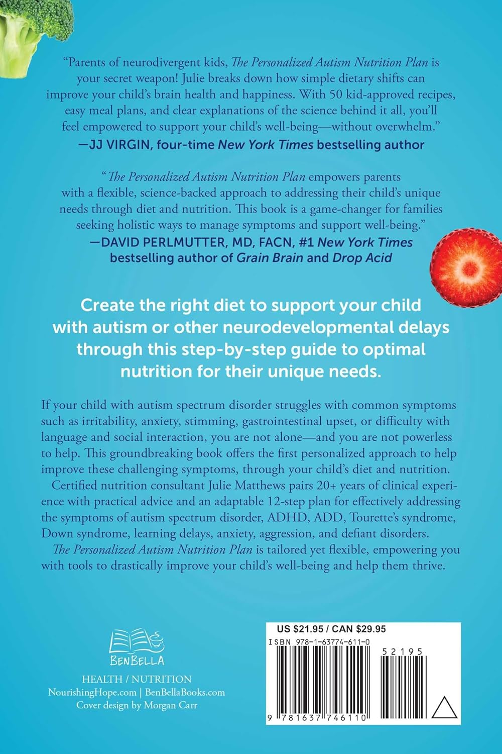 Certified nutrition consultant Julie Matthews pairs more than 20 years of clinical experience with practical advice and an attainable and adaptable 12-step plan for effectively addressing the symptoms of autism spectrum disorder, ADHD, ADD, Tourette’s syndrome, Down syndrome, learning delays, anxiety, aggression, and defiant disorders.