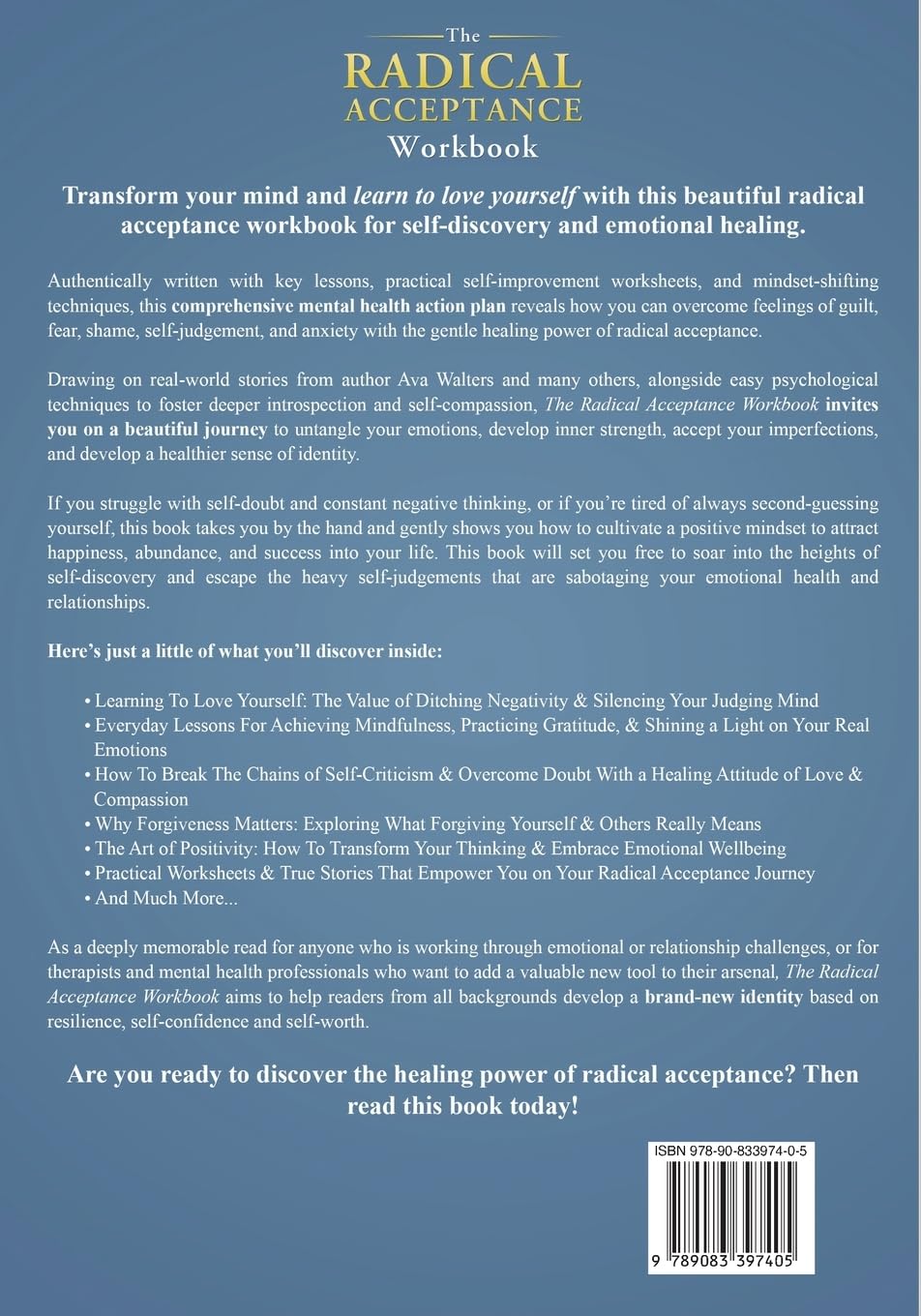 Unlock the path to inner healing and transformative growth with the empowering “Radical Acceptance Workbook.” This comprehensive self-help guide, enriched with real-life insights from author Ava Walters and others, invites you on a journey of self-discovery, emotional healing, and the cultivation of an abundance mindset through the lens of Acceptance.