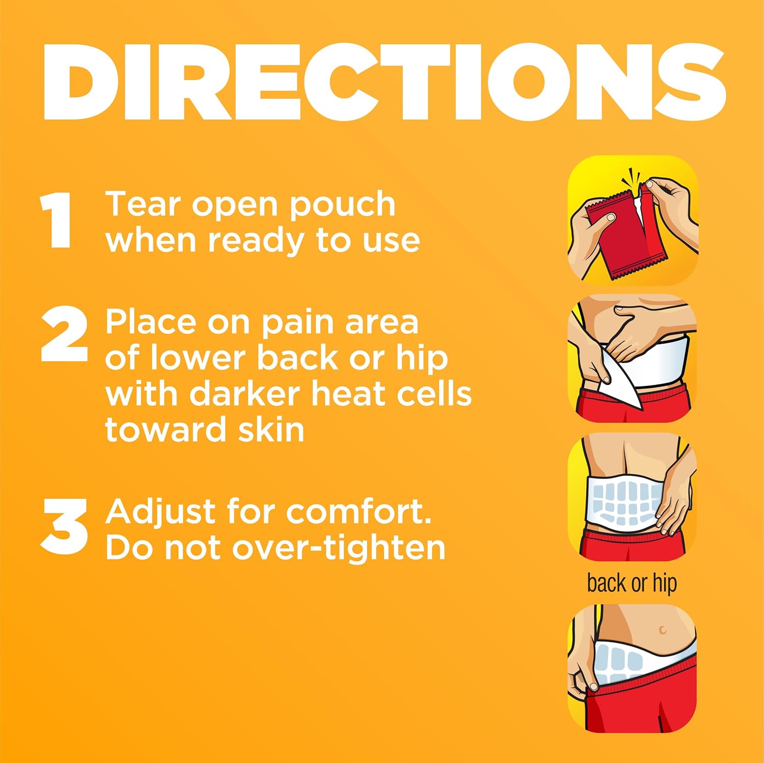 Back Pain HeatWraps: These air activated HeatWraps provide up to 16 hours of pain relief. Set Includes 10 Lower Back wraps (L/XL Size)