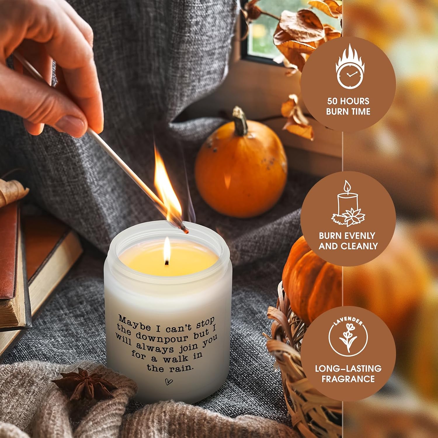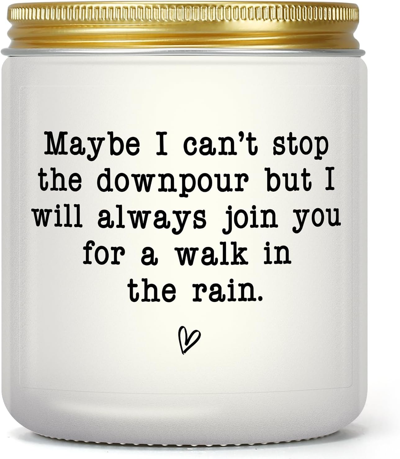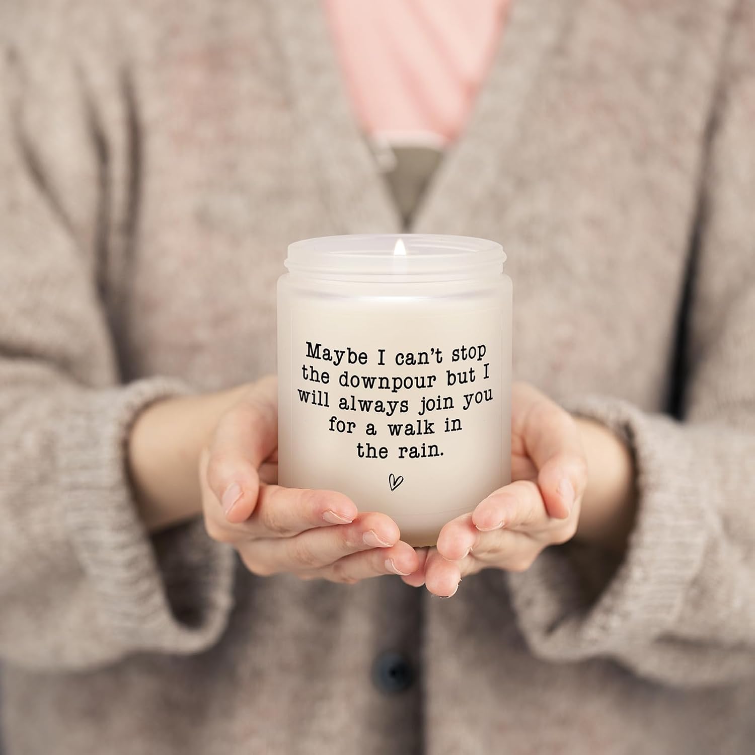 【THOUGHTFUL GIFT IDEAS】It can be hard to know exactly what to say when a loved one is experiencing a difficult event. This CINGUE candle with warm quote “Maybe I can’t stop the downpour but I will always join you for a walk in the rain” makes it a special gift for best friends. This candle can cheer them up and make them feel better, whether they’re experiencing loss of loved one, a tough breakup, divorce, cancer, miscarriage or just a bad day—during any time of year.