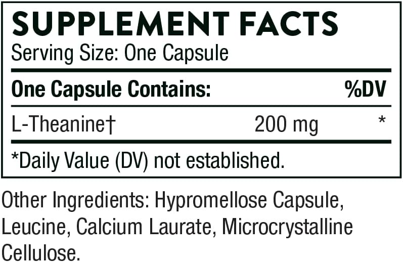 THORNE Theanine – 200mg of L-Theanine – Support a Healthy Stress Response, Relaxation, and Focus – Increases Brain Alpha-Wave Production* – 90 Capsules