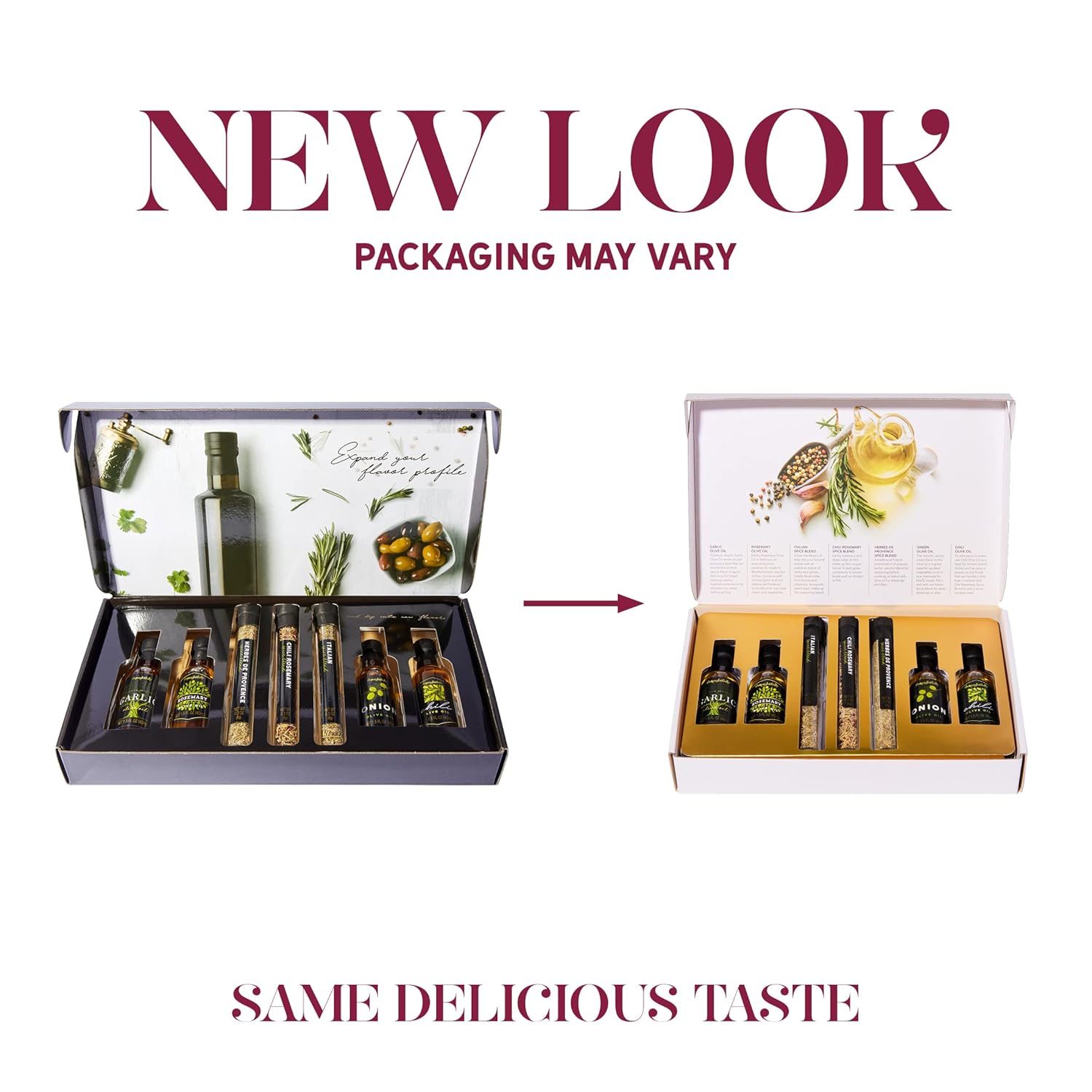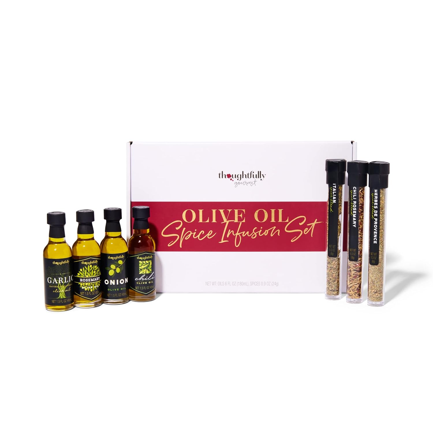 Thoughtfully Gourmet, Olive Oil Spice Infusion Gift Set, Premium Cold Pressed Extra-Virgin Olive Oil from Spain, Includes 4 Flavored Olive Oils and 3 Flavorful Spice Infusion Blends, Set of 7