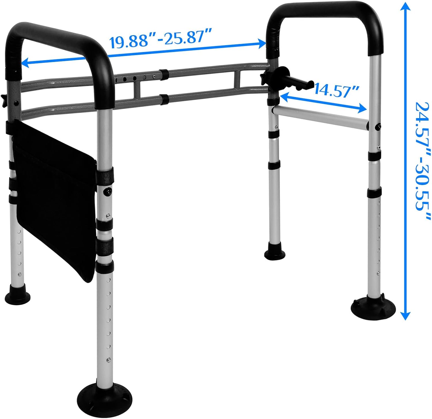 Adjustable Height & Width: Width from 19.88′-25.87″, Height from 24.57″-30.45″. Customizable to fit any toilet sizes and user preferences, ensuring optimal comfort and support.