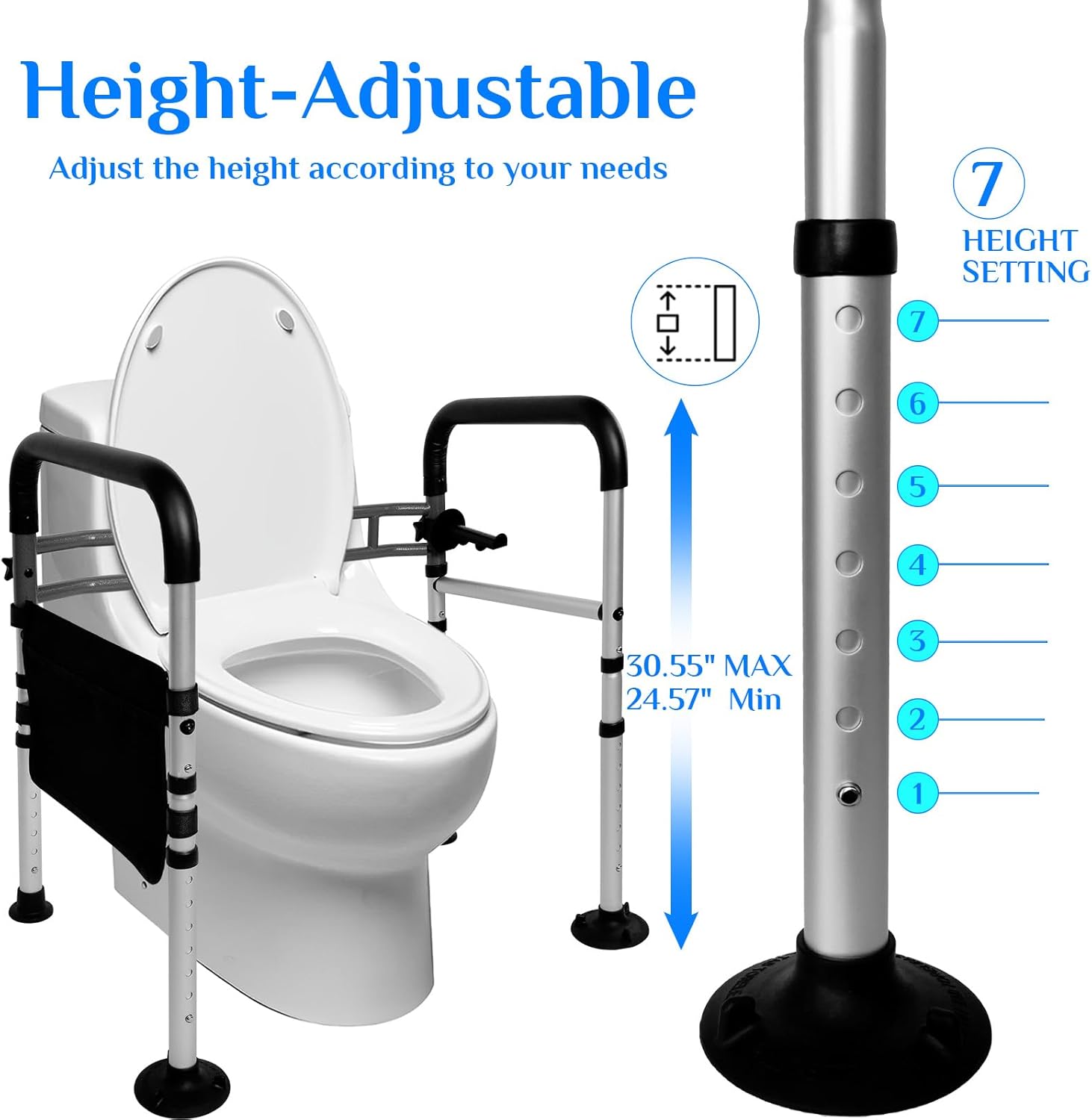 Toilet Safety Rails & Frames for Seniors,330 LBS Adjustable Foldable Toilet Safety Frame with Arms,Stand Alone,Stand Up Assistat for Seniors,with Sack,Fit Any Toilet,Easy Installation