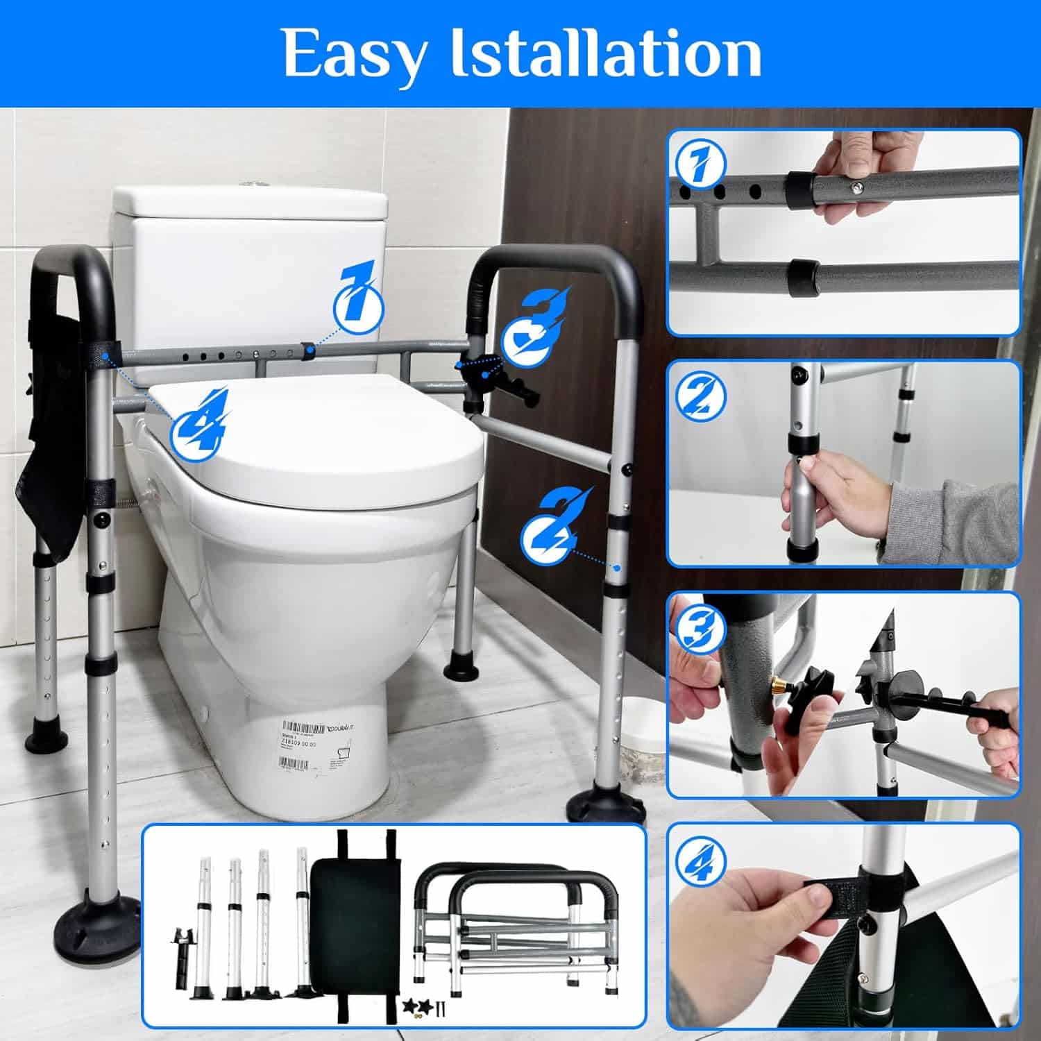 Easy Installation: This toilet safety rails for seniors requires no complicated installation and with our installation instructions, it can be easily assembled in minutes without any tools, turning any bathroom into a safer space.