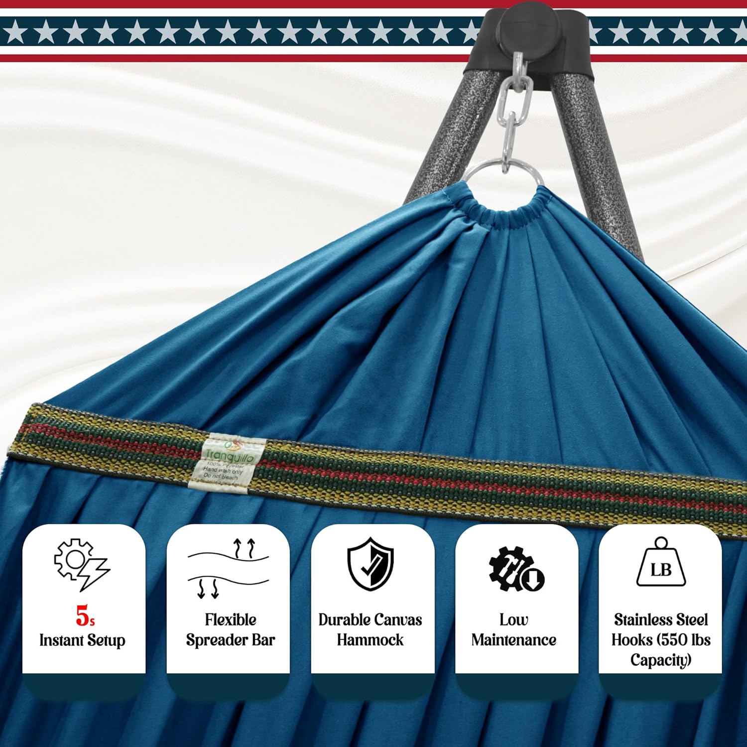 UNPARALLELED COMFORT: High-quality, durable spreader bars meticulously stitched-in to prevent flipping, keeping your hammock perfectly stable, no matter how you settle in. Our luxuriously soft, breathable canvas keeps you cool and comfortable, offering gentle support for a truly restful and rejuvenating experience