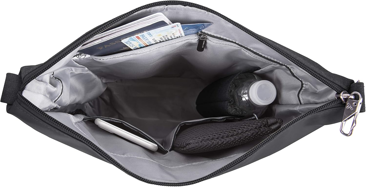Just returned from a week-long trip using the Travelon Classic and it was great – roomy without being overly large, and with enough pockets to keep things organized. The latches on two of the zippered compartments gave me an added sense of security.