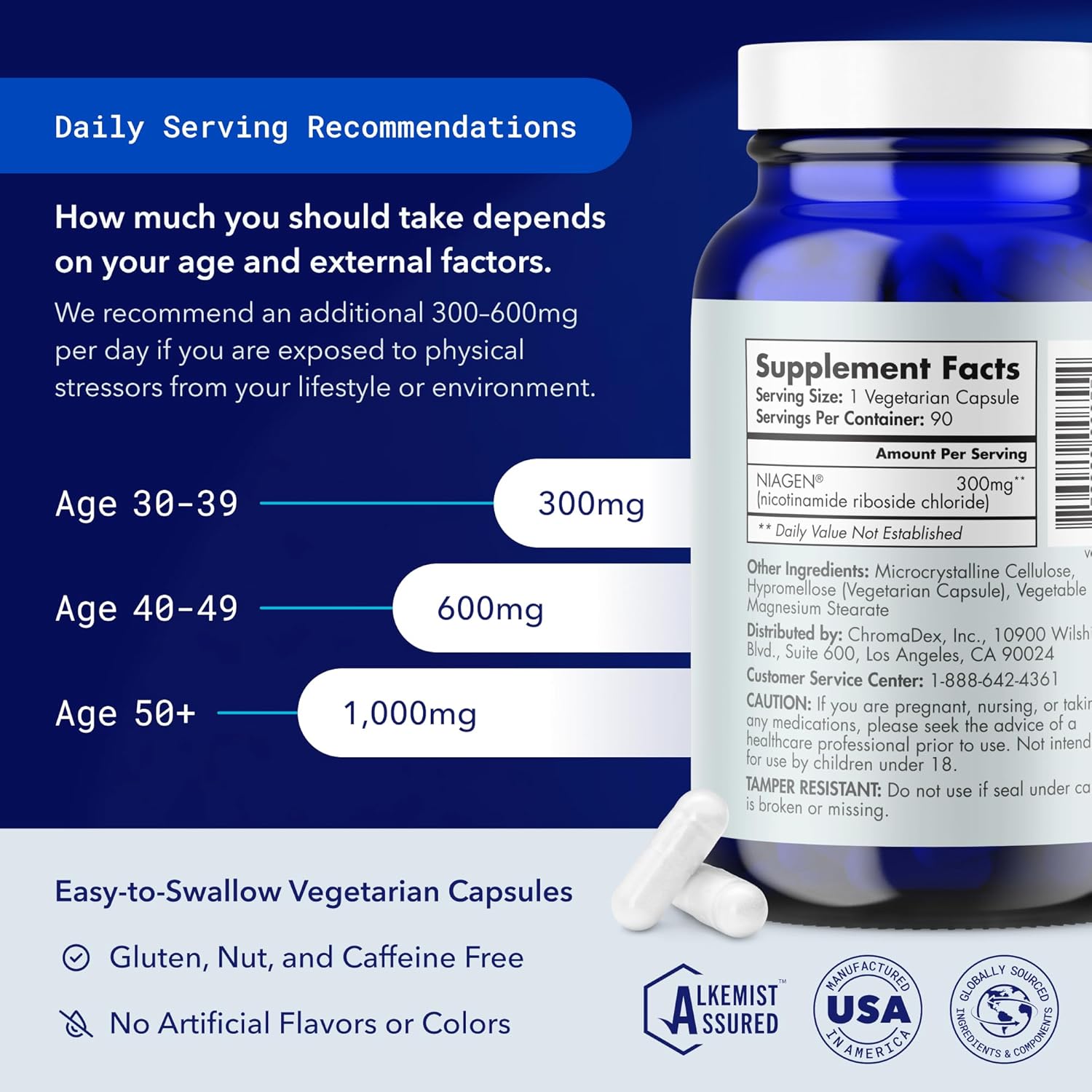 TESTED FOR SAFETY, POTENCY, AND PURITY – Tru Niagen is one of the most well-studied, patented supplements. Patented ingredient Niagen has achieved regulatory acceptance for use in supplements: twice as a New Dietary Ingredient, and once as GRAS. Made in the USA with globally sourced ingredients and third-party tested by ISO/IEC accredited labs for potency, safety, and purity. Tru Niagen NAD+ capsules are vegetarian, gluten free, nut free, caffeine free, and have no artificial flavors or colors.
