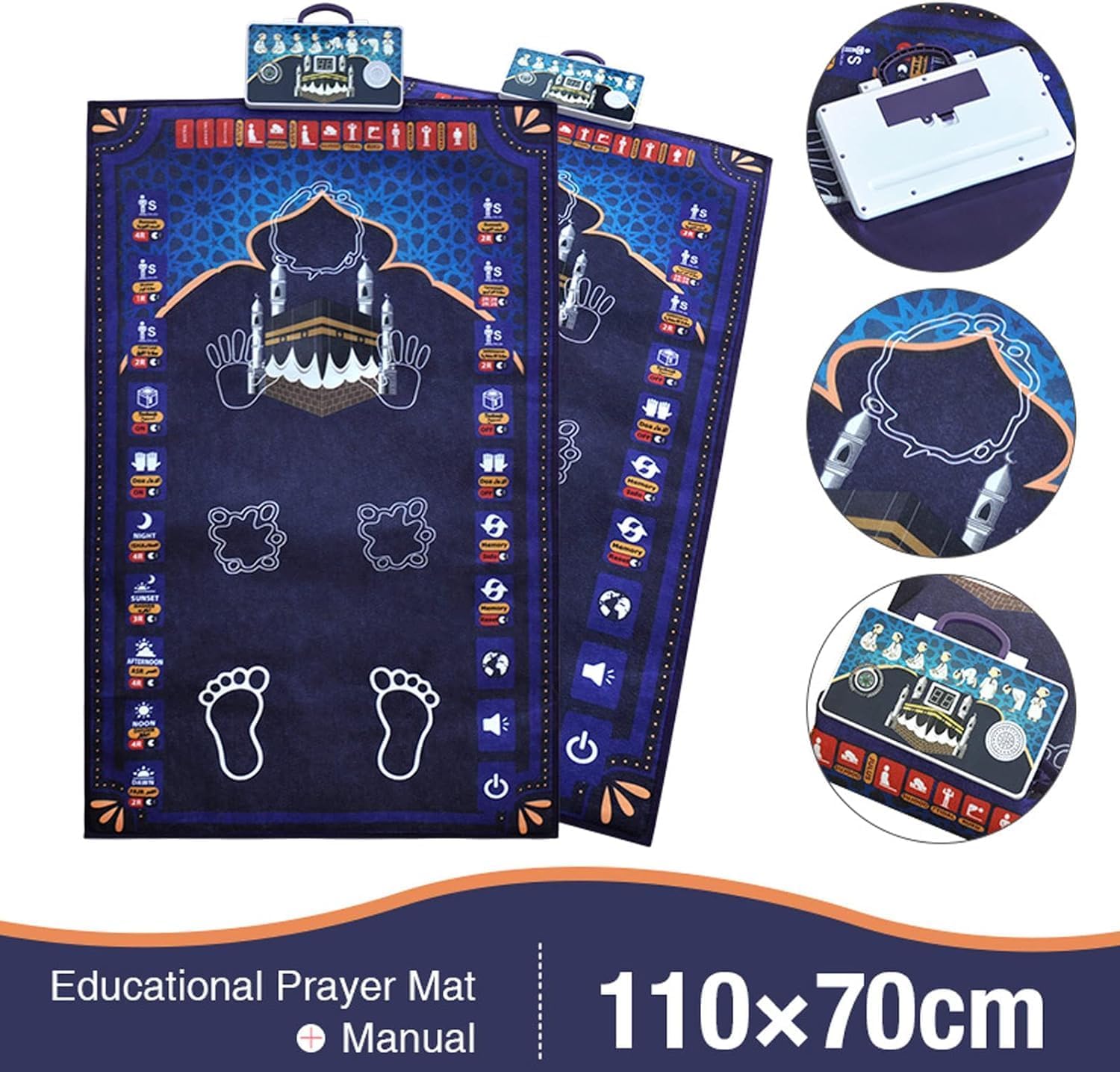 urns Foldable Smart Intelligent Muslim Prayer Rug – Electronic Islamic Prayer Carpet Mat, Adult/Kids, Blue, Medium, Machine-Made Cotton, Non Slip, Spot Clean Only