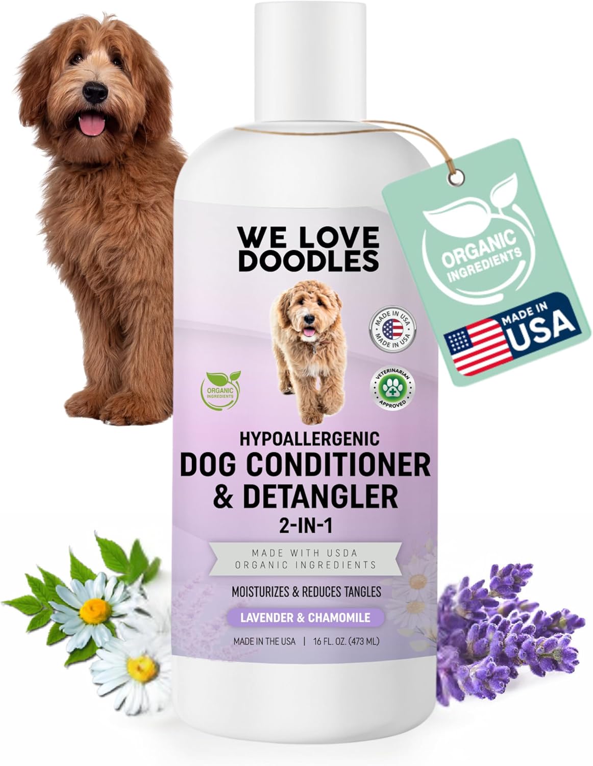 USDA Organic Dog Conditioner & Detangler, 2-in-1 Conditioner for Allergies & Itching, Made in USA, Lotion Treatment for Dogs, Perfect for Poodles, Doodles, & Goldendoodles, 16oz [We Love Doodles]
