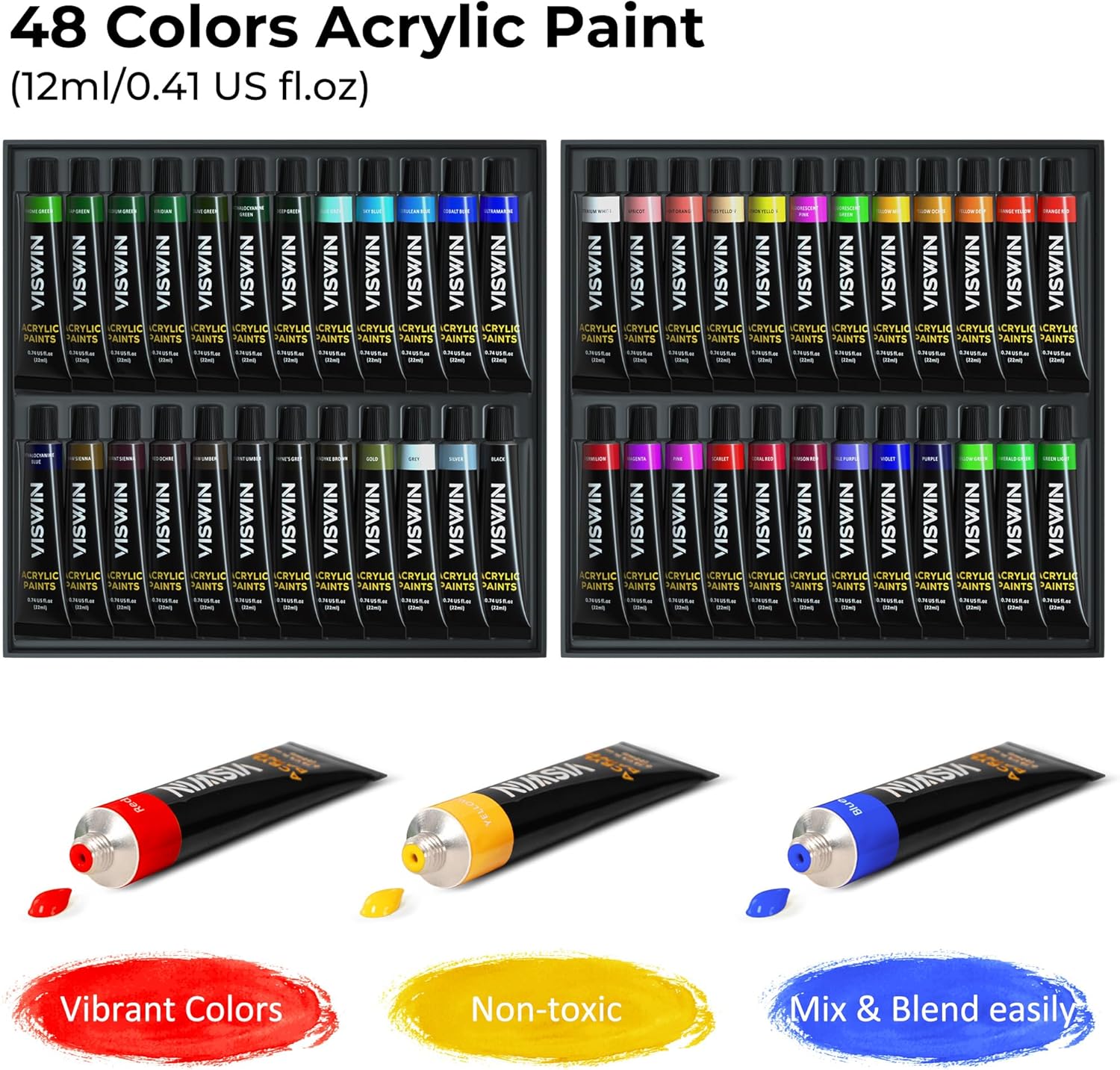 13 reviews for VISWIN Deluxe Acrylic Paint Set, 74 Pcs Complete Art Supplies with Tabletop Sketch Box Easel, 48 Colors Acrylic Paints, Canvas, Paint Brushes, Painting Kit for Adults, Art Set for Artists, Beginners