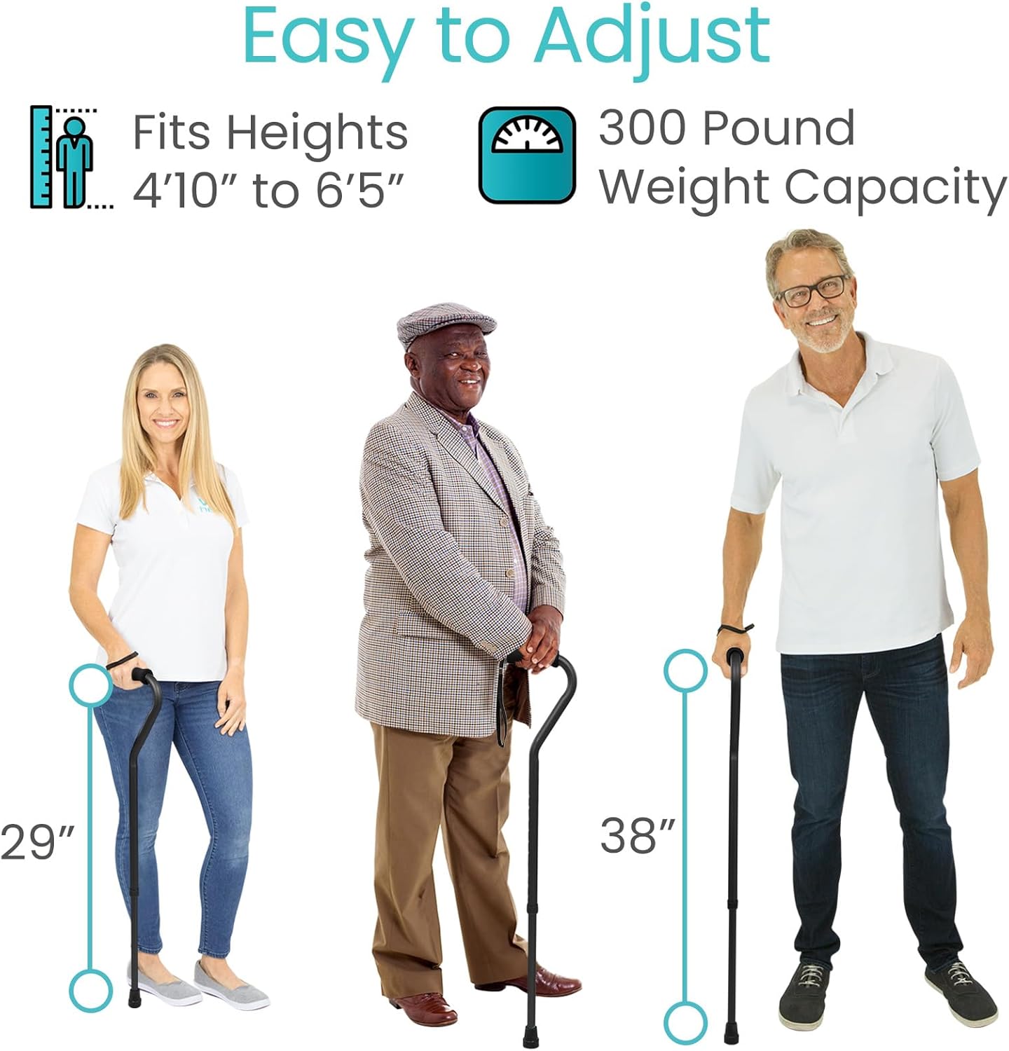 LIGHTWEIGHT & ADJUSTABLE: Made from corrosion-resistant anodized aluminum, this cane is both lightweight and built to last. It weighs only 12 ounces. Secure height adjustments from 29” to 38” with push-button and locking ring. Supports up to 300 pounds.