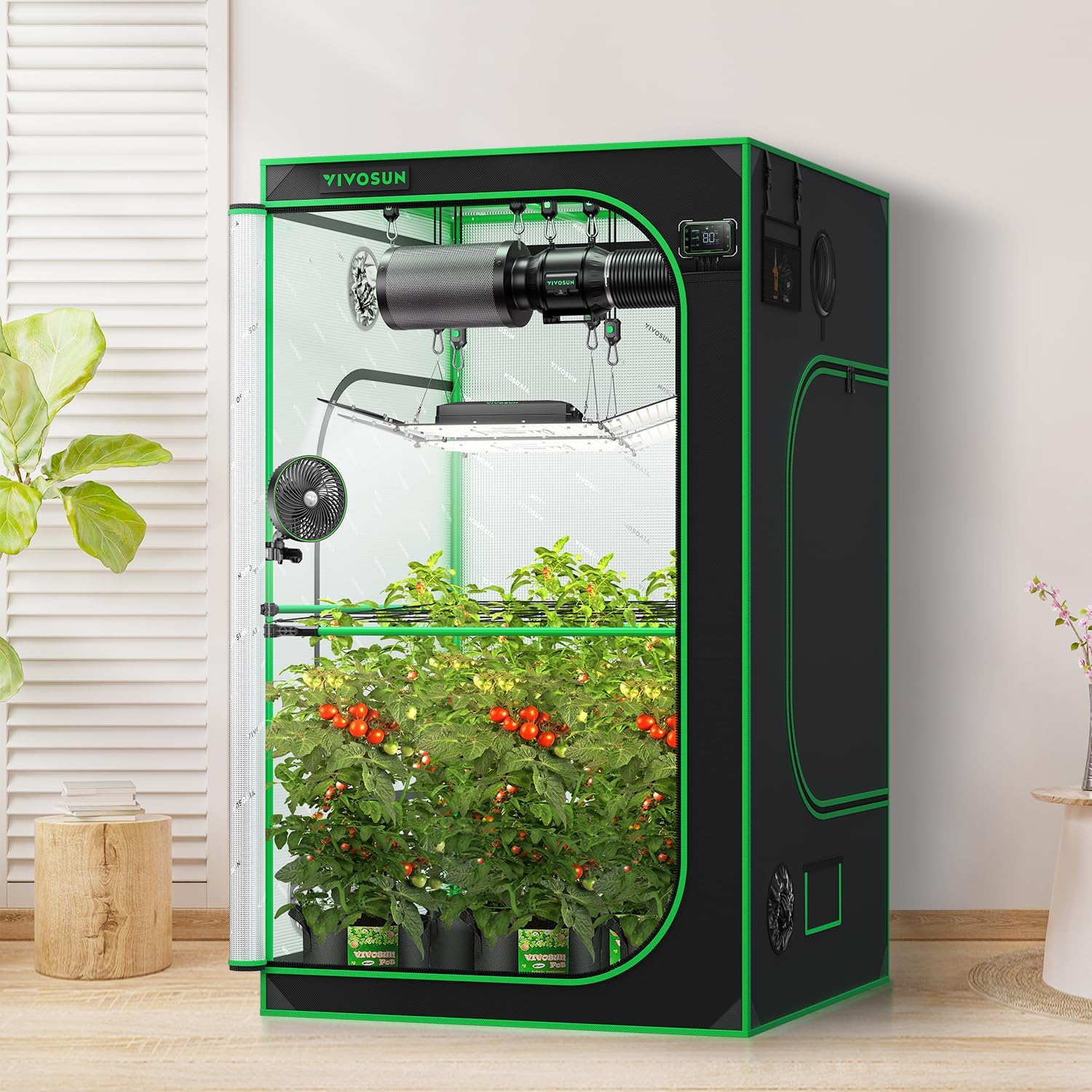 Everything is great and has gotten me through a full harvest, except for the fan. Soon after receiving the set, the fan stopped rotating. I purchase a set of 2 to replace it and the same thing happened to those. I was forced to switch to spider farmer fans.Very sad because I would prefer to stick to Vivosun. If not for this then it would get 5 stars. (Separate rating on other purchase of fans is 2 stars for reasons above)