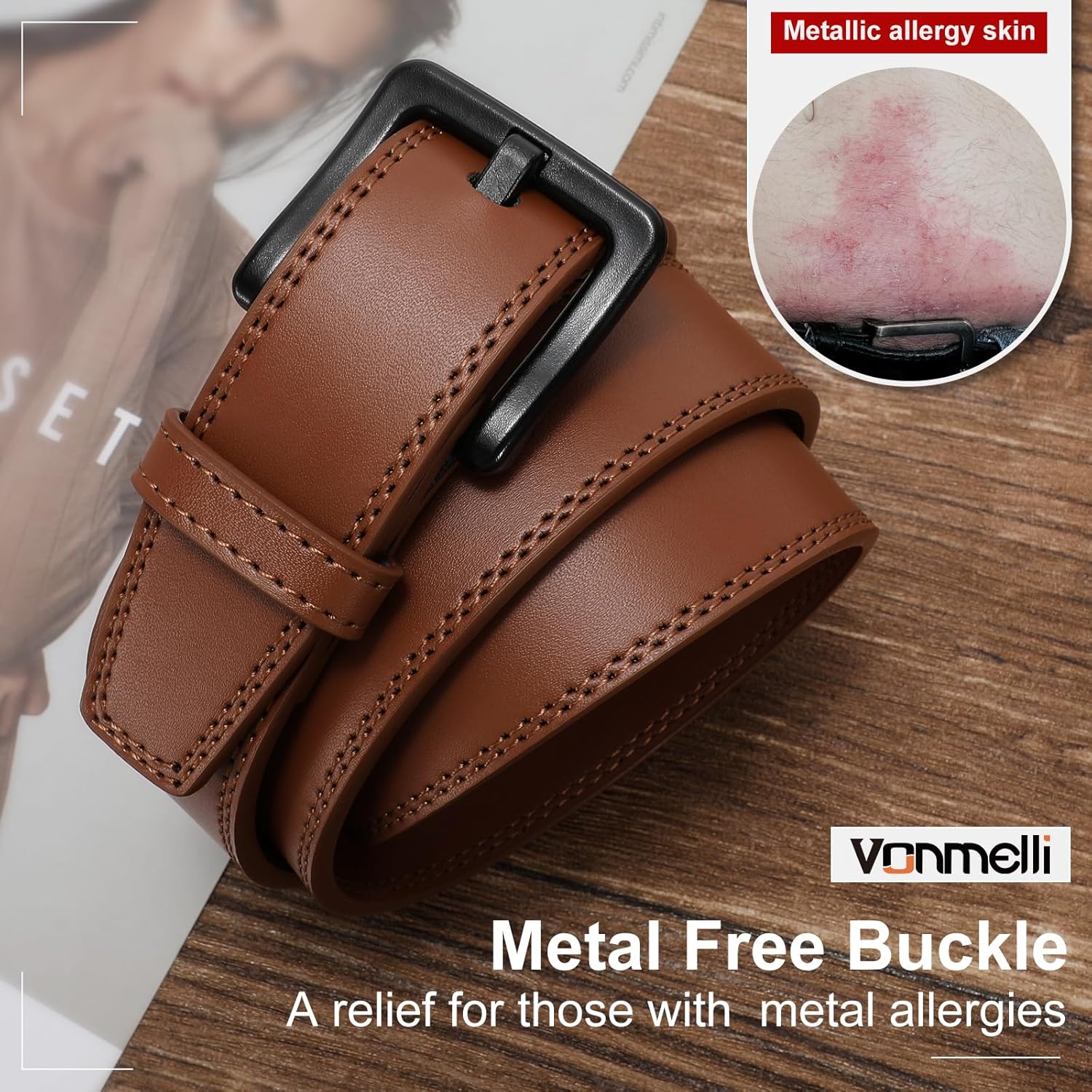 VONMELLI Nickel Free Leather Belt for Men, TSA Approved Non Metal Men’s Belt for Jeans with Hypoallergenic Buckle