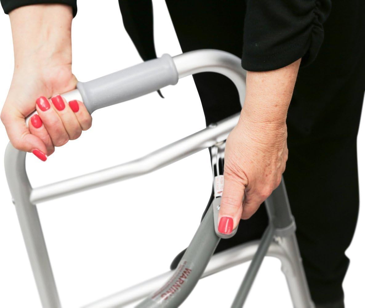 COMFY HAND GRIPS The deluxe front wheel walker comes with specially created hand grips that make the user feel more comfortable when moving around