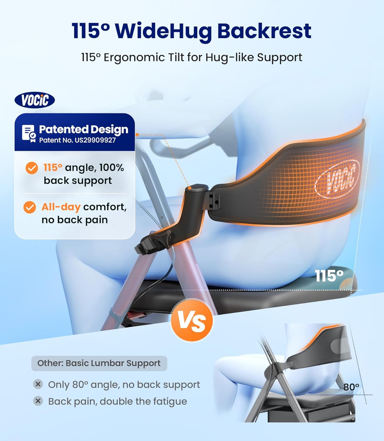 【Ultimate Comfort】Exclusively designed bionic seat is designed ergonomically according to the human body structure, perfectly relieving pressure on the hips. With 1.6″ thickened waterproof feature, it provides an unparalleled comfortable sitting. Additionally, VOCIC walker with wheels utilizes a widened breathable backrest. Unlike other rollator walker with seat that only come with tubular thin-layered backrests, it offers you a more comfortable support for your back.