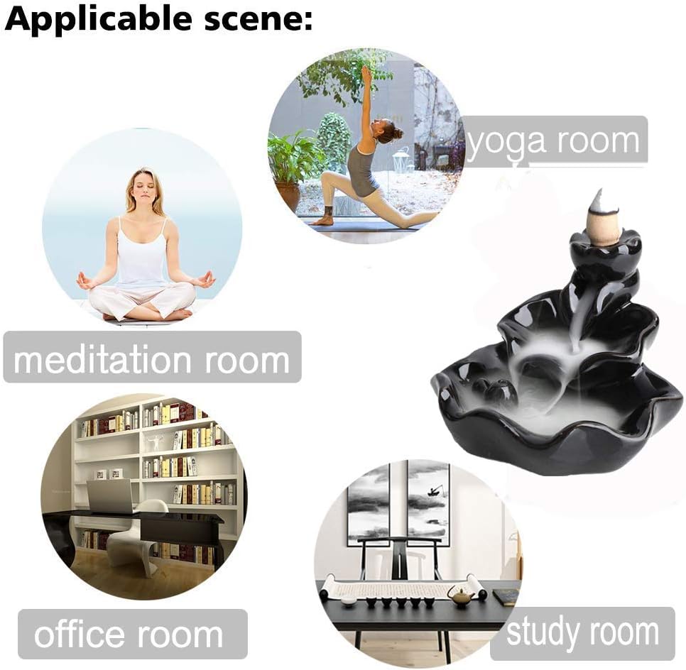 Waterfall Incense Burner, Lotus Backflow Incense Holder Ceramic Censer Cones Sticks Porcelain Holder with 10 Free Mixed Aromatherapy Cones