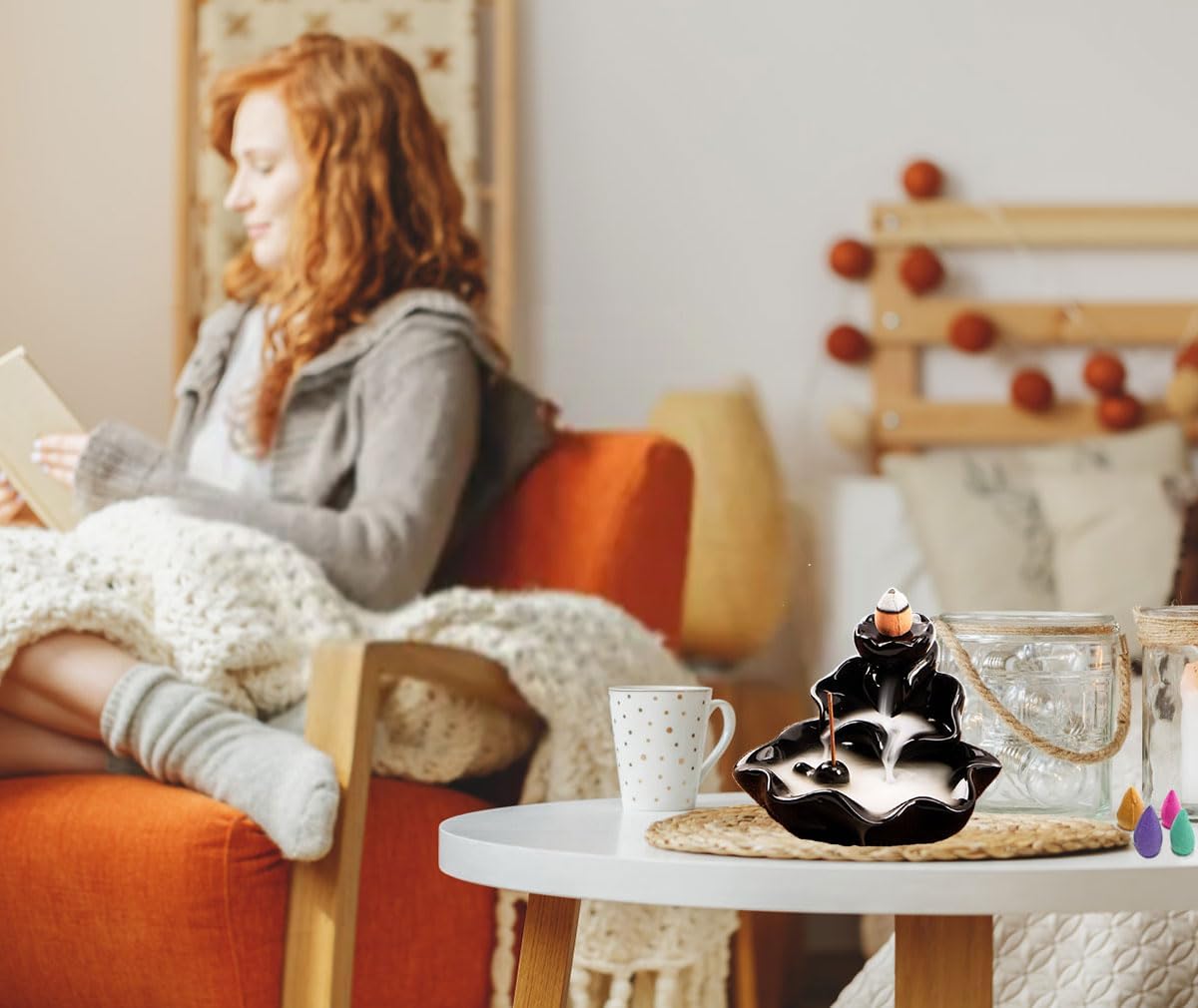 1 review for Waterfall Incense Burner, Lotus Backflow Incense Holder Ceramic Censer Cones Sticks Porcelain Holder with 10 Free Mixed Aromatherapy Cones