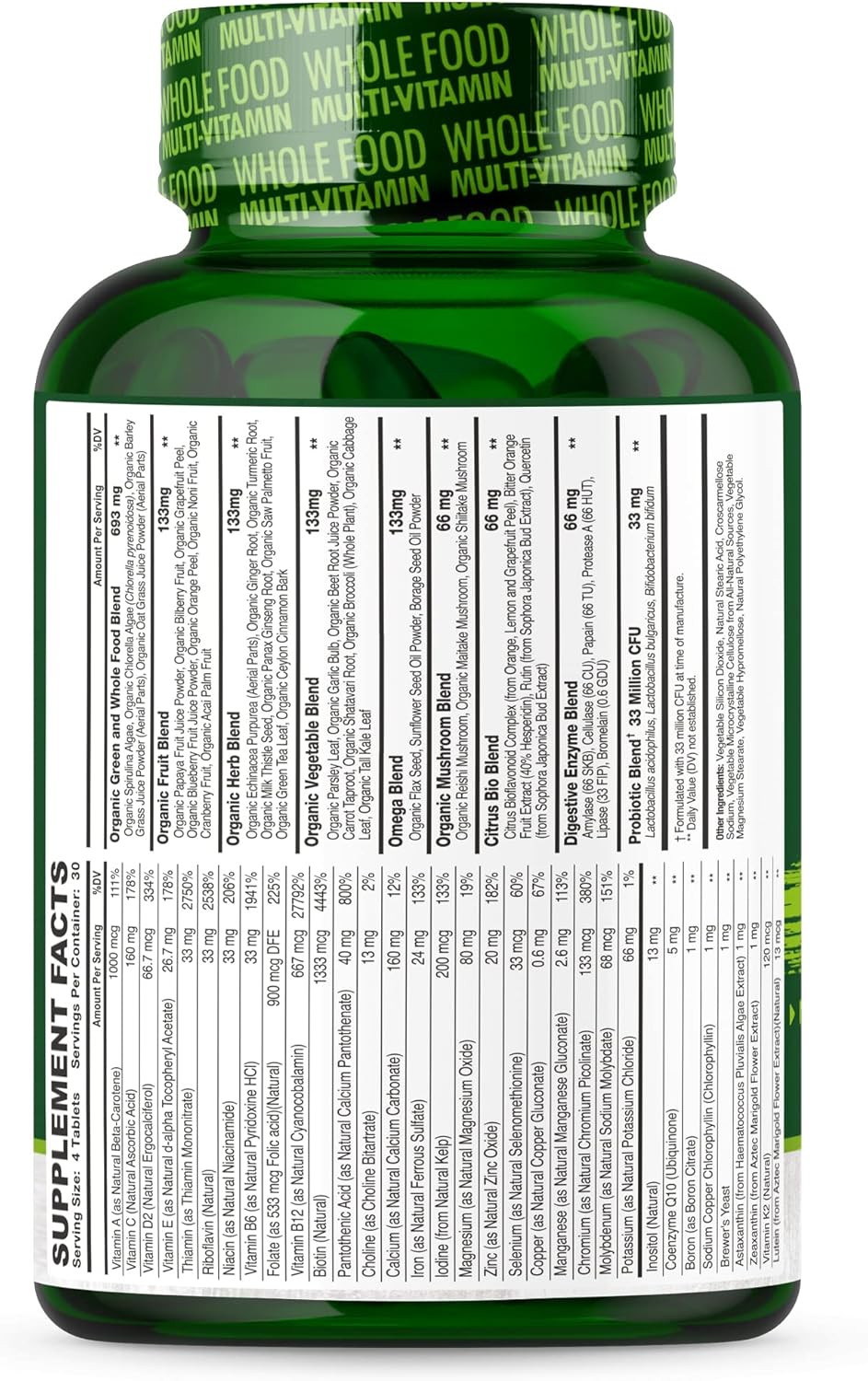 Premium Men’s Whole Food Formula: Only Natural Vitamins A, B, C, D, E, K ★ Natural Organic Fruit, Vegetable, Mushroom, Herbal, Citrus Bio, Digestive Enzyme, Probiotic, Omega, & Green Super Food Blends ★ Non GMO ★ Gluten Free ★ Does NOT Contain Soy, Gelatin, Egg, Dairy or Caffeine ★ Veggie ★ No Additives or Fillers ★ Made in USA