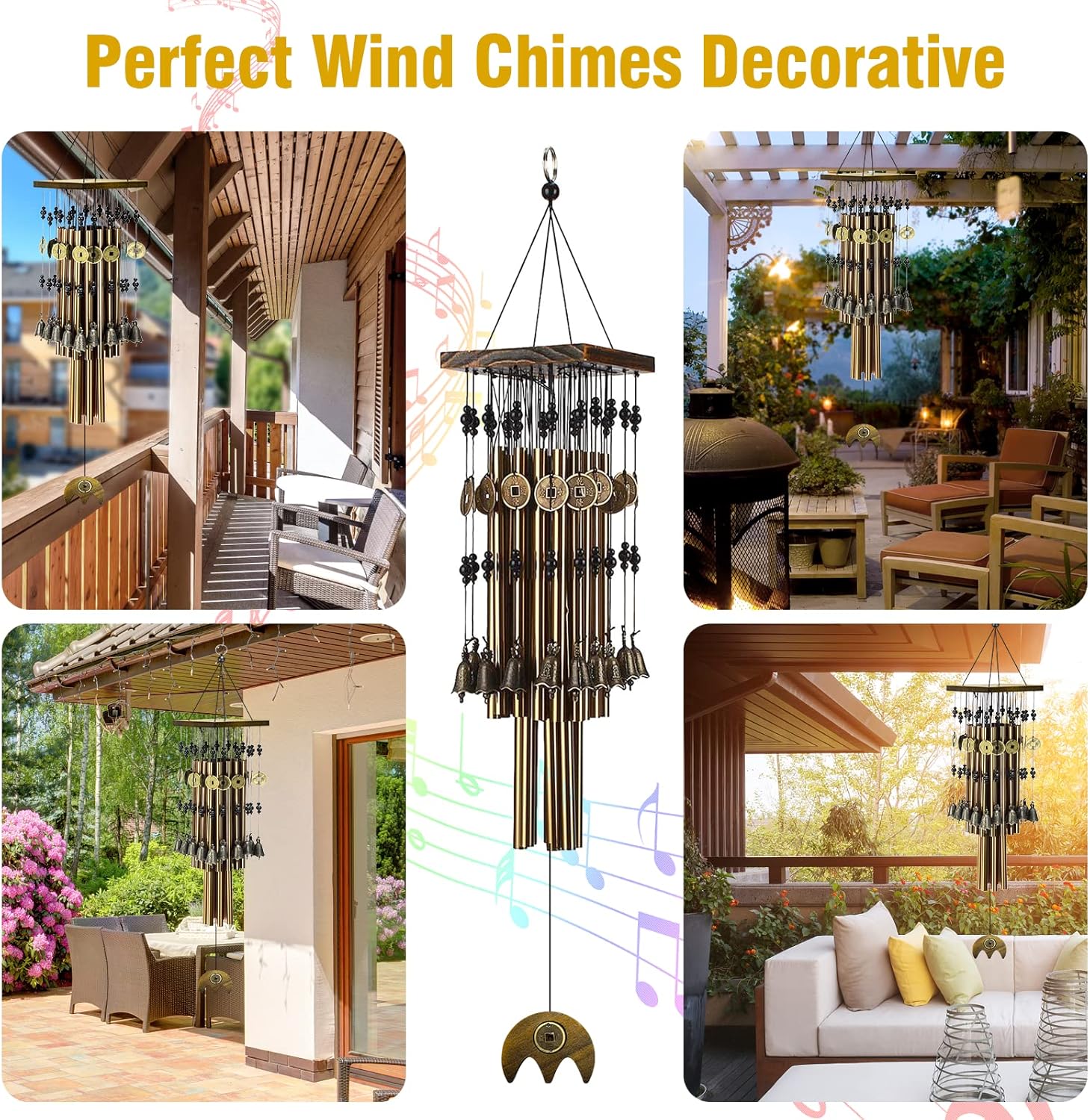 Perfect Decorative: As wind chimes is originated from the legend of Japanese ghost, our wind chimes outdoor features asian style with chinese coins,Wind chimes outdoors can’t only be used as an ornament to decorate your garden/yard/balcony/window/corridor,but also increase the vitality of music for these places;At the same time,our windchime also can bring people love, gratitude and memorial in daily life.