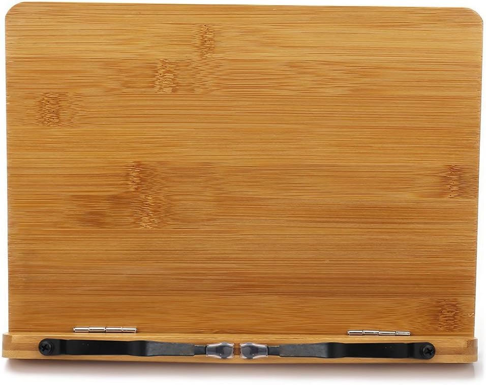 wishacc Bamboo Book Stand, Adjustable Book Holder Tray and Page Paper Clips-Cookbook Reading Desk Portable Stable Hard-Wearing Lightweight Bookstand-Textbooks Books