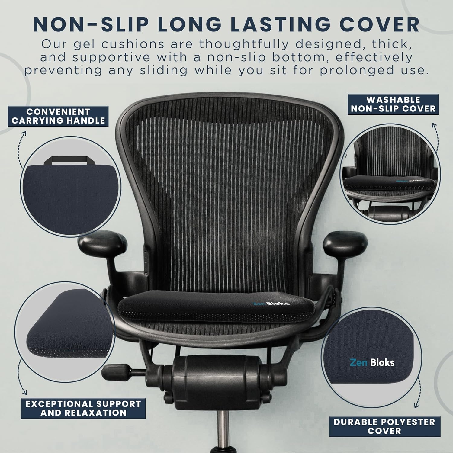 ZenBloks American Brand Lifetime Warranty – We are here to help! Whether it’s a gift or for yourself, we stand behind everything we make. We promise to create our gel seat cushion with attention to sitting, driving, wheelchair comfort, pain relief, travel ease, and durability—because we want you to love our products and enjoy long sitting as intended. If you aren’t satisfied with the gel seat cushion itself, contact us through Amazon we will help solve it or 30-day full refund.