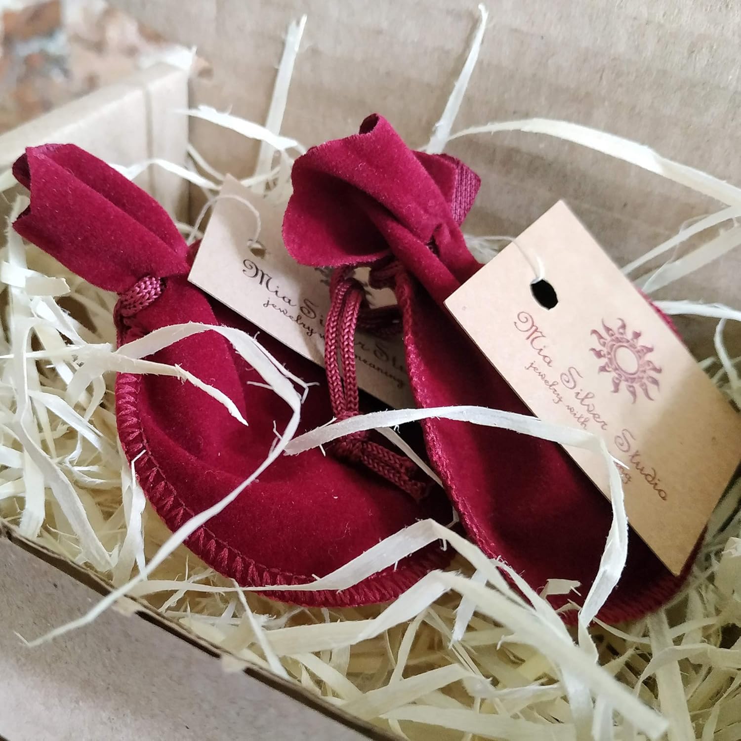 Our jewelry is coming with high-quality elegant velvet pouch packaging. Ready to give as a gift.