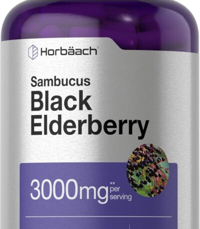 Horbäach Black Elderberry | 3000mg Capsules | 300 Count | Non-GMO, Gluten Free | Sambucus Supplement